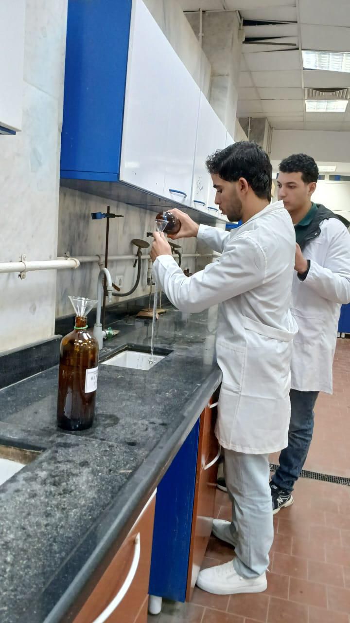 وأدّى الطلاب الامتحانات العملية لمقرر الكيمياء التحليلية داخل المعامل المجهزة وفق أحدث المعايير، حيث جاءت الاختبارات لقياس ما اكتسبه الطلاب من مهارات أساسية ومتقدمة، شملت الفهم الدقيق لمبادئ حسابات الصيغ الكيميائية، وتحليل البيانات الخاصة بالمحاليل المنظمة والتوازن الكيميائي، والتعامل مع الطرق الكيميائية المختلفة لتحليل المحاليل القياسية، إلى جانب القدرة على اختيار أساليب التحليل الأنسب لتحليل المواد الصيدلانية بمختلف أنواعها.