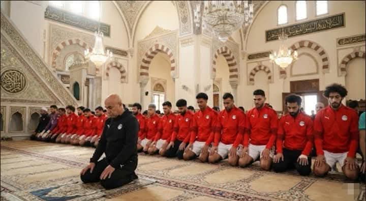 وأكدت المصادر داخل جهاز منتخب مصر أن الصورة ليست صحيحة، وأن لاعبي المنتخب لديهم التزام بالصلاة.