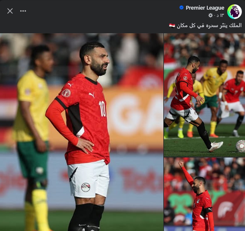 احتفى الحساب الرسمي لـ الدوري الإنجليزي الممتاز لكرة القدم بالنجم المصري محمد صلاح ومنتخب مصر بعد الصعود لدور الستة عشر من كأس الأمم الأفريقية وكتب حساب الدوري الإنجليزي عبر موقع فيس بوك: الملك ينثر سحره في كل مكان