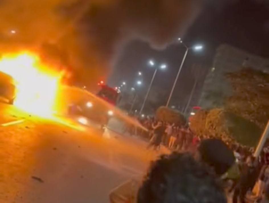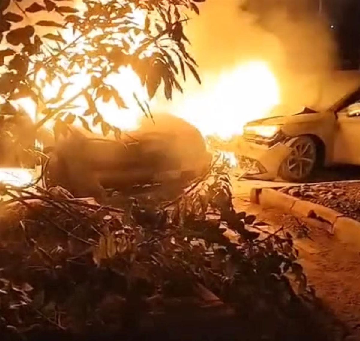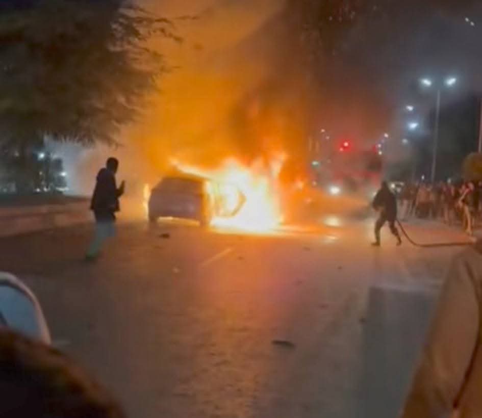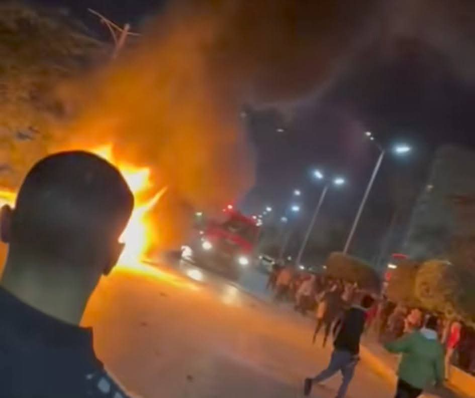 تحرك أمنية وسيارتي إسعاف لموقع حريق السيارة