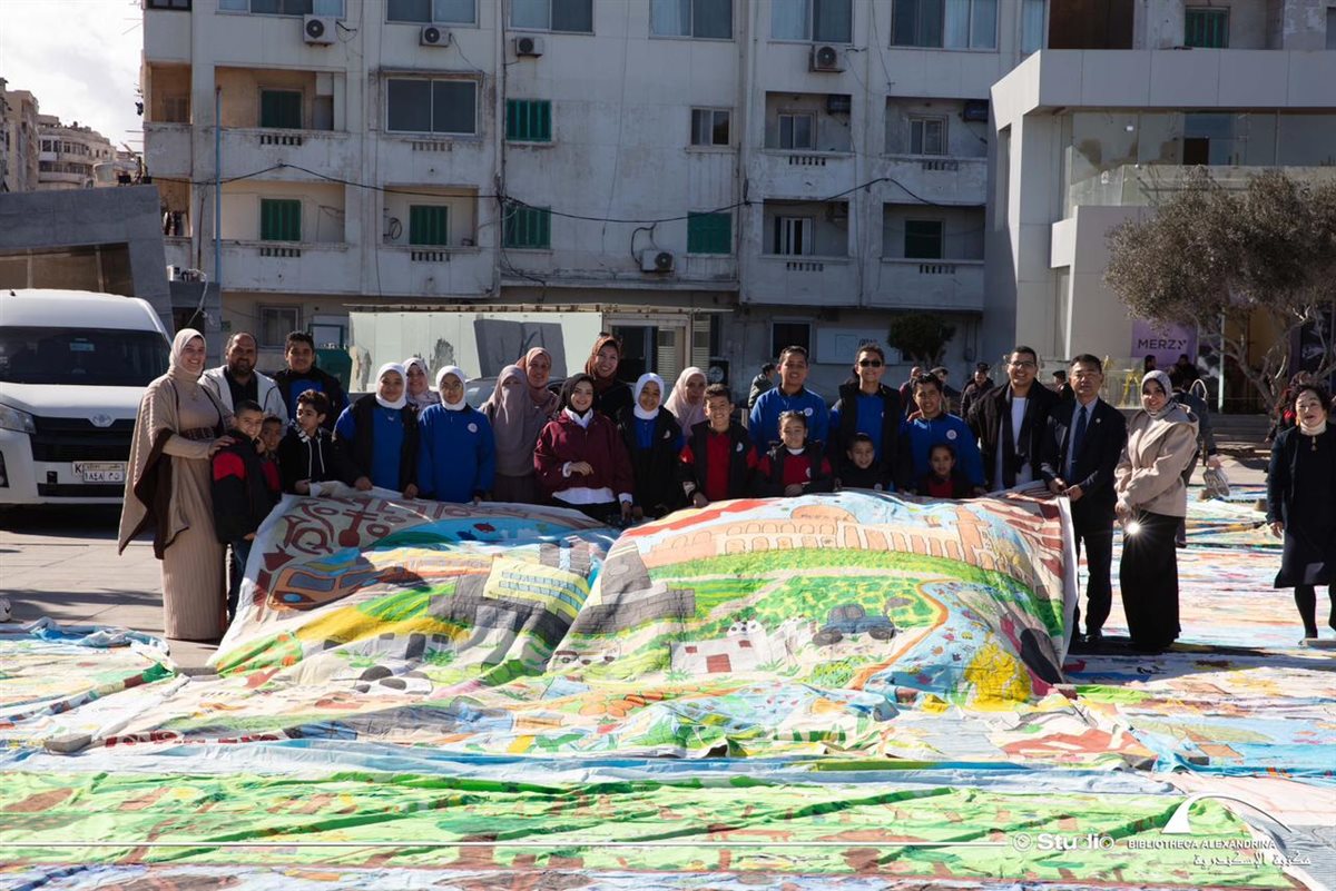 استضافت مكتبة الإسكندرية اليوم، احتفالية كبرى للكشف عن "أكبر لوحة مرسومة في العالم" بالساحة الخارجية للمكتبة، والتي شارك في إبداعها طلاب المدارس المصرية اليابانية (EJS) بالتعاون مع أطفال من دولة اليابان، وذلك بتنظيم مشترك بين جمعية "Earth Identity Project" اليابانية ومكتبة الإسكندرية، وبالتنسيق مع وزارة التربية والتعليم وسفارة اليابان بالقاهرة، في حدث يجسد أسمى معاني التعاون الثقافي والتربوي بين البلدين.
