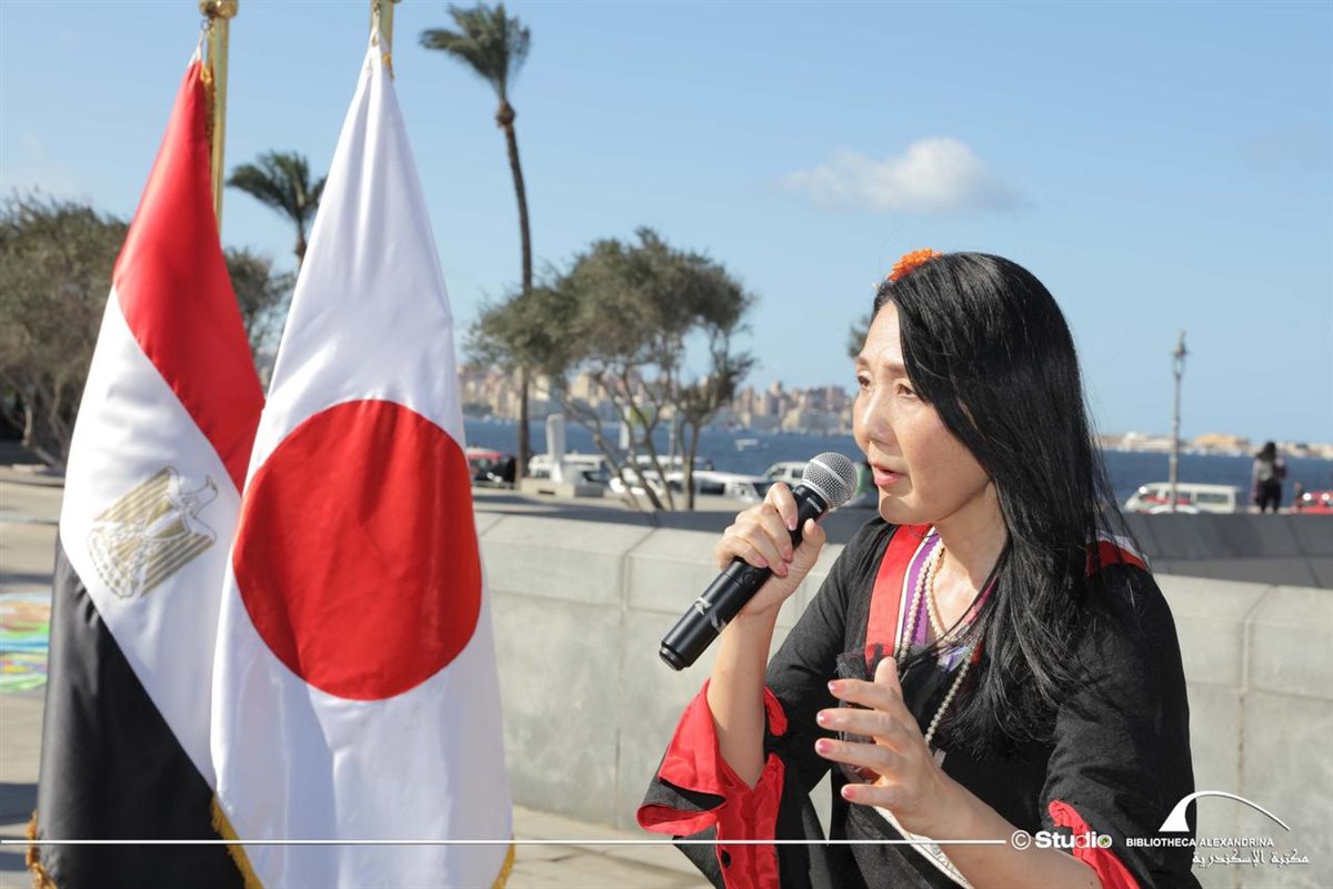 وألقى تسوكاموتو ياسوهيرو، القائم بالأعمال بسفارة اليابان بالقاهرة، كلمته والذي بدأ حديثه باللغة العربية معبرًا عن سعادته بالمشاركة في الإسكندرية.