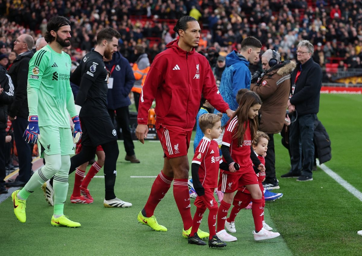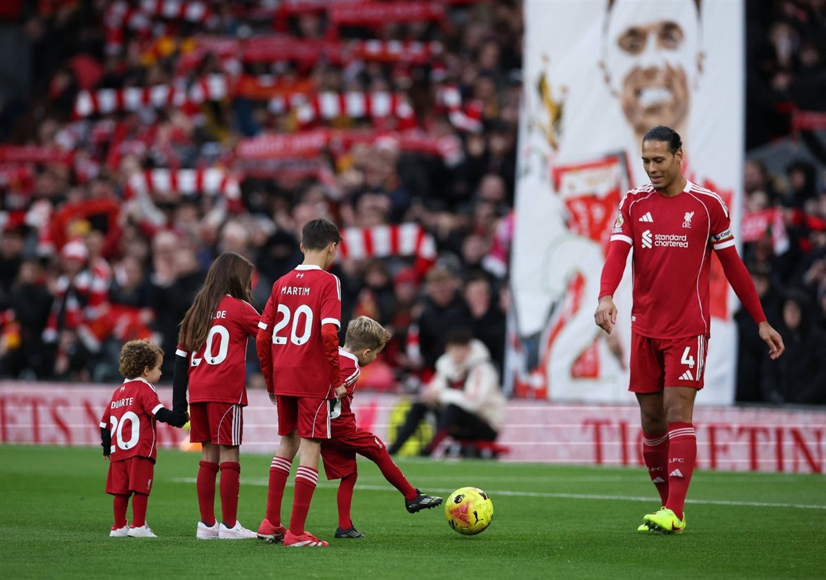 واصطحب فان دايك أبناء ديوجو حوتا خلال الدخول لملعب أنفيلد قبل مباراة ليفربول ضد وولفرهامبتون، لتكريم والدهم الراحل نجم الريدز السابق.