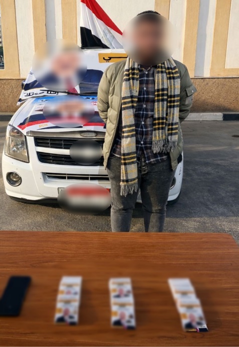 وفي إطار متابعة سير العملية الانتخابية، تمكنت الخدمات الأمنية المكلفة بتأمين إحدى الدوائر بدائرة مركز شرطة دمنهور بالبحيرة من ضبط أحد الأشخاص أثناء استقلاله سيارة ربع نقل بمحيط الدائرة، وبحوزته عدد من كروت الدعاية الانتخابية الخاصة بأحد المرشحين، معدة لتوزيعها على الناخبين لحثهم على التصويت لصالحه.