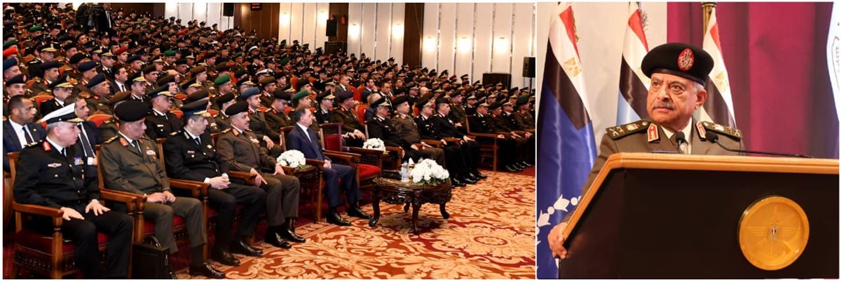 وألقى الفريق أول عبد المجيد صقر القائد العام للقوات المسلحة وزير الدفاع والإنتاج الحربى كلمة نقل خلالها تحيات وتقدير الرئيس عبد الفتاح السيسى رئيس الجمهورية القائد الأعلى للقوات المسلحة لرجال القوات المسلحة والشرطة المدنية لجهودهم فى حفظ الأمن خلال الفترة الماضية، مؤكدًا أن القوات المسلحة والشرطة هم جناحى الأمن والإستقرار فى مجابهة كافة التحديات المرتبطة بالأمن القومى المصرى، وسيظلا معًا فى طليعة الشعب المصرى يدافعان عن أمنه وسلامة أراضيه، ضاربين أروع الأمثلة فى التضحية بالغالى والنفيس للحفاظ على الإستقرار الأمنى وتهيئة المناخ لإستكمال مسيرة التنمية التى تنفذها الدولة المصرية بكافة المجالات.