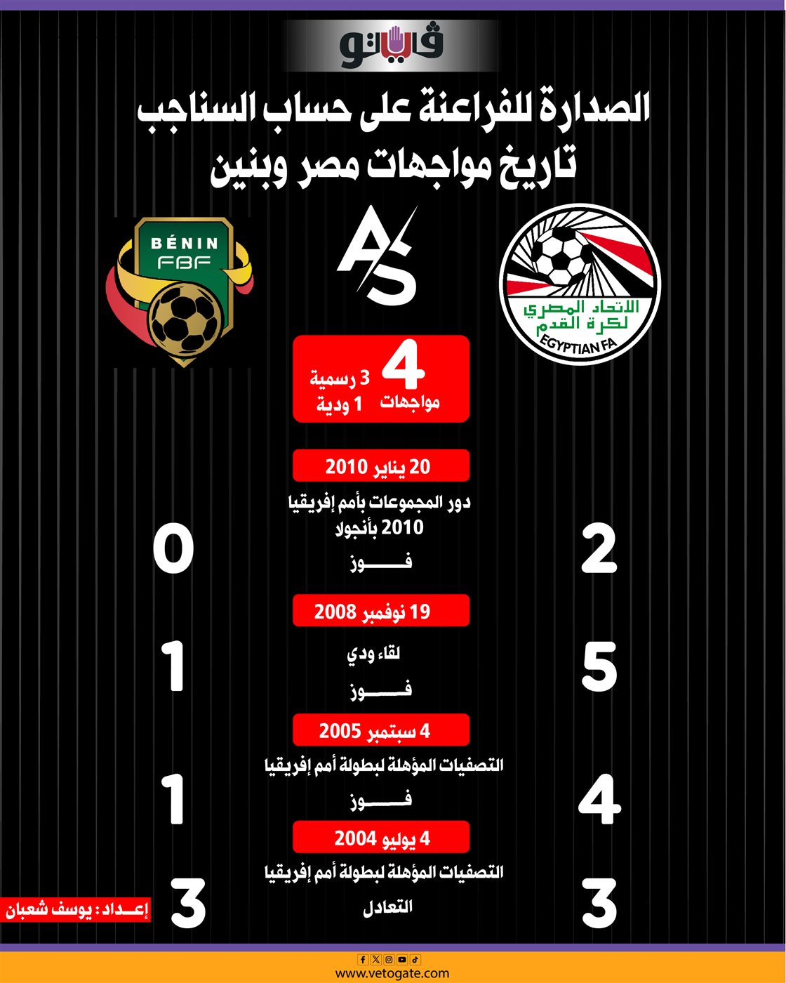 الصدارة للفراعنة على حساب السناجب، تاريخ مواجهات مصر وبنين (إنفوجراف)