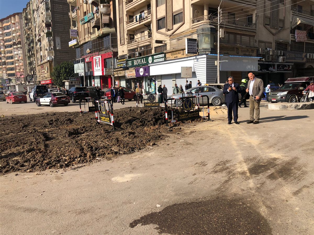 تفقد أعمال إصلاح تسرب المياه بالخط بشارع قناة السويس