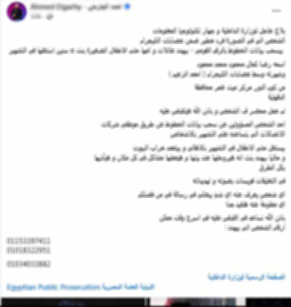 تمكنت الأجهزة الأمنية بالدقهلية من كشف ملابسات منشور مدعوم بصورة تم تداوله على مواقع التواصل الاجتماعي، حيث تبين قيام صانع محتوى بابتزاز بعض العائلات والتشهير بهم.