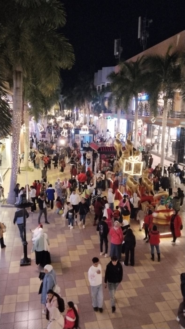 وأجرت فيتو بثا مباشرا من منطقة جرين بلازا وسط زحام شديد بها والاستعداد إلى الاحتفال برأس السنة الميلادية الجديدة 2026.