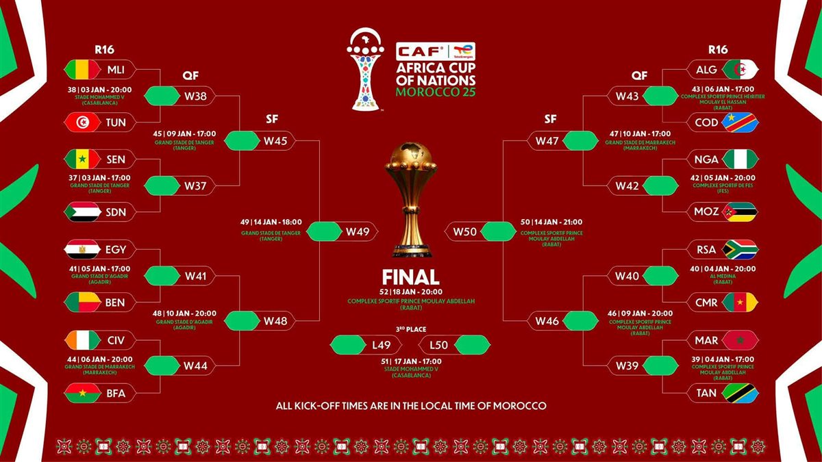 مواجهات ومواعيد مباريات دور الـ16 بكأس أمم إفريقيا