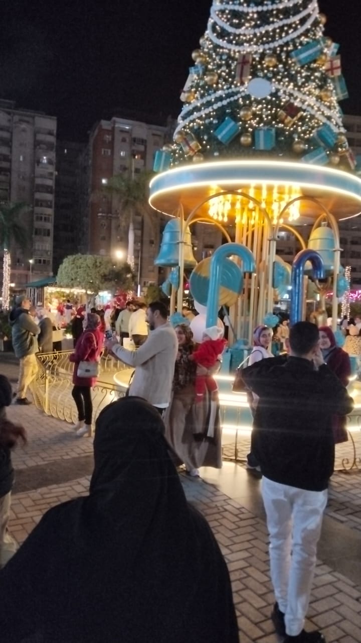 توافد المئات من أهالي الإسكندرية، إلى الشوارع والمولات والمناطق السياحية فى المدينة الساحلية، للاحتفال برأس السنة الميلادية الجديدة 2026، والكريسماس رغم الطقس السيئ والبرودة الشديدة.
