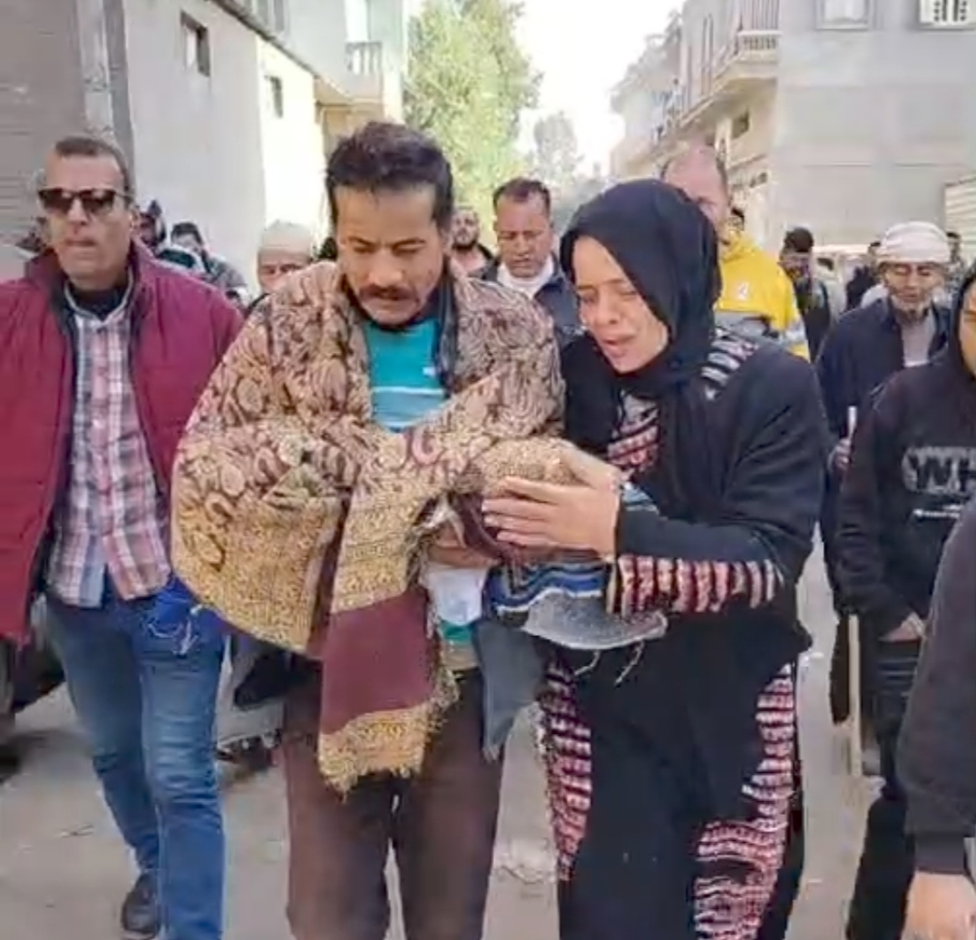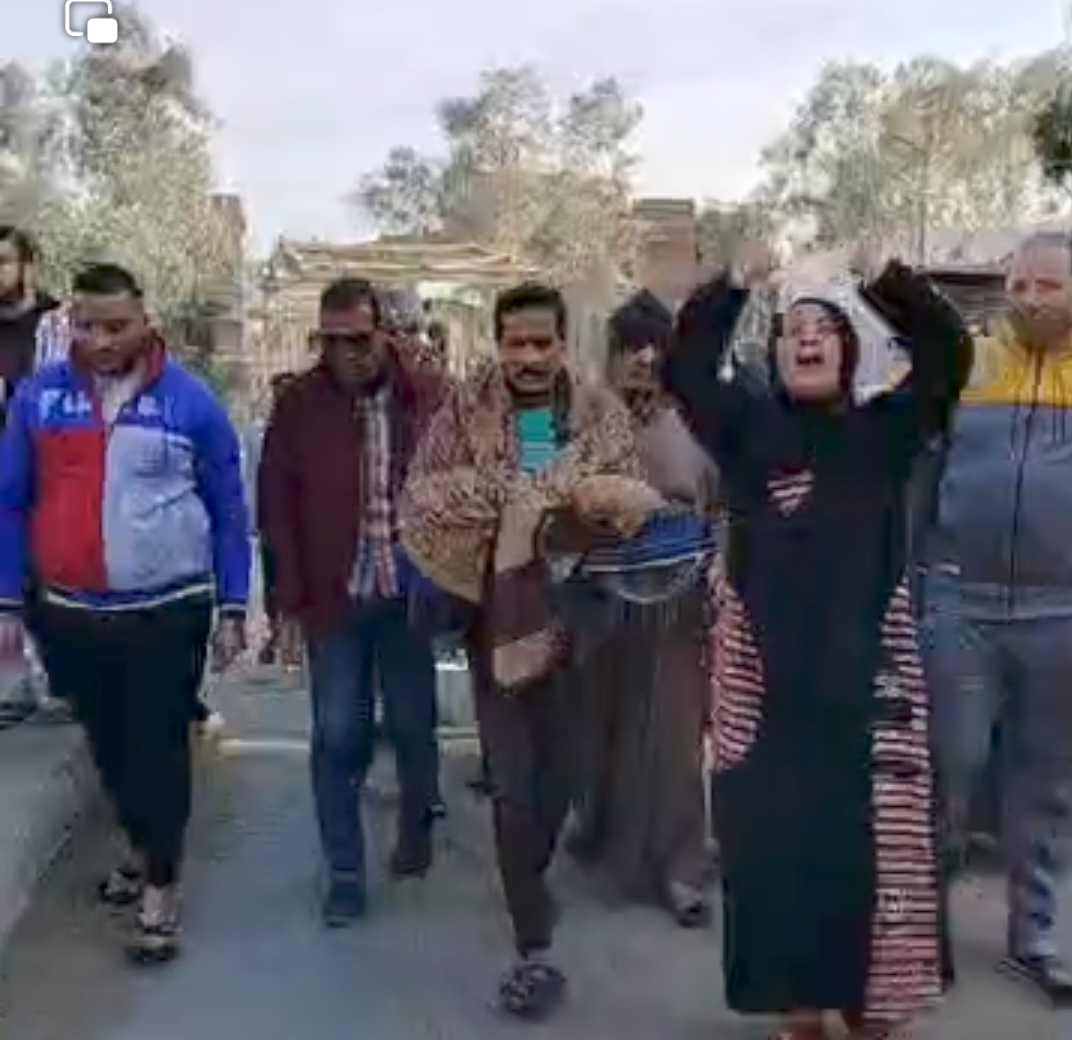 وفي مشهد إنساني مؤثر في منية النصر بالدقهلية خرجت الجنازة حيث حمل الأب الرضيع متوجها به إلى مقابر العائلة وسط بكاء أسرته.