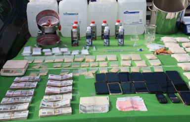 وعقب تقنين الإجراءات، تم استهداف المتهمين وضبطهم وبحوزتهم 94 كيلو جرام من مخدر الحشيش الاصطناعي، وكميات كبيرة من المواد الخام المستخدمة في تصنيع المخدرات، وأدوات التحضير والتصنيع، و3 سيارات، ومبالغ مالية بالعملتين المحلية والأجنبية من متحصلات نشاطهم الإجرامي، و17 هاتف محمول