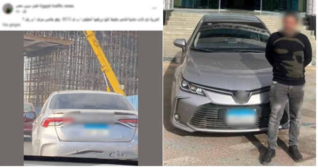 تمكنت أجهزة الأمن بالجيزة، من ضبط قائد سيارة بعد تداول منشور مدعوم بصورة على مواقع التواصل الاجتماعي، يظهر فيه قيام قائد السيارة بطمس اللوحات المعدنية الخلفية وتثبيت زجاج حاجب للرؤية أثناء سيره بأحد الشوارع بدائرة قسم شرطة ثالث أكتوبر.