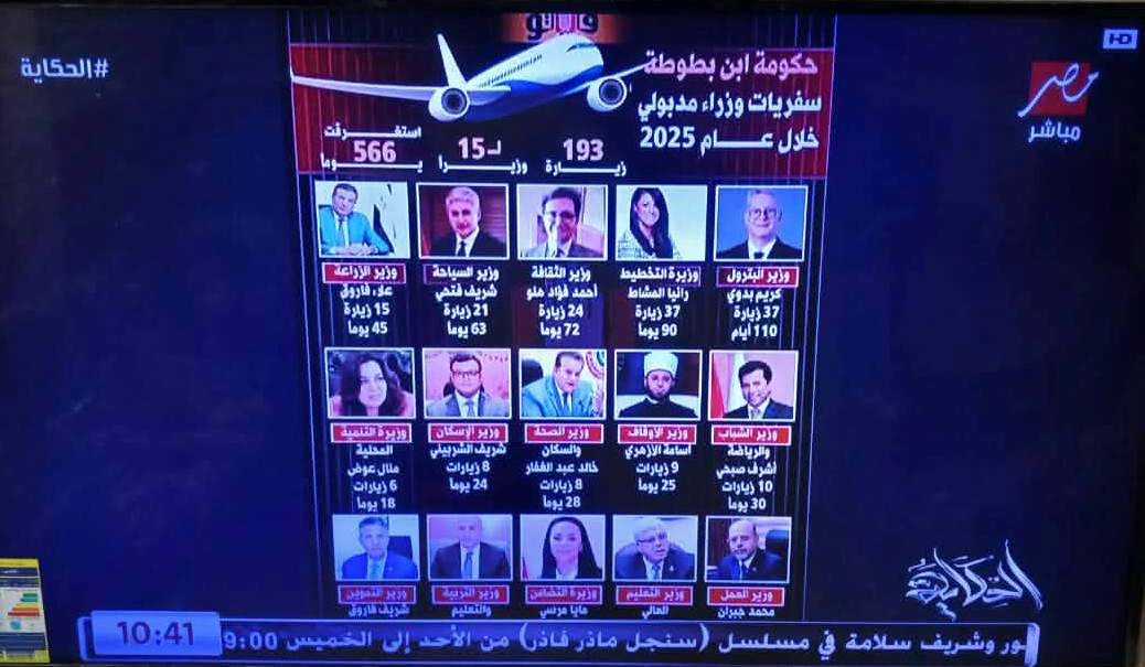 أبرز الإعلامي عمرو أديب خلال برنامجه “الحكاية” المذاع على قناة “mbc مصر”، ملف جريدة “فيتو” بخصوص سفريات وزراء حكومة الدكتور مصطفى مدبولي خلال عام 2025.
