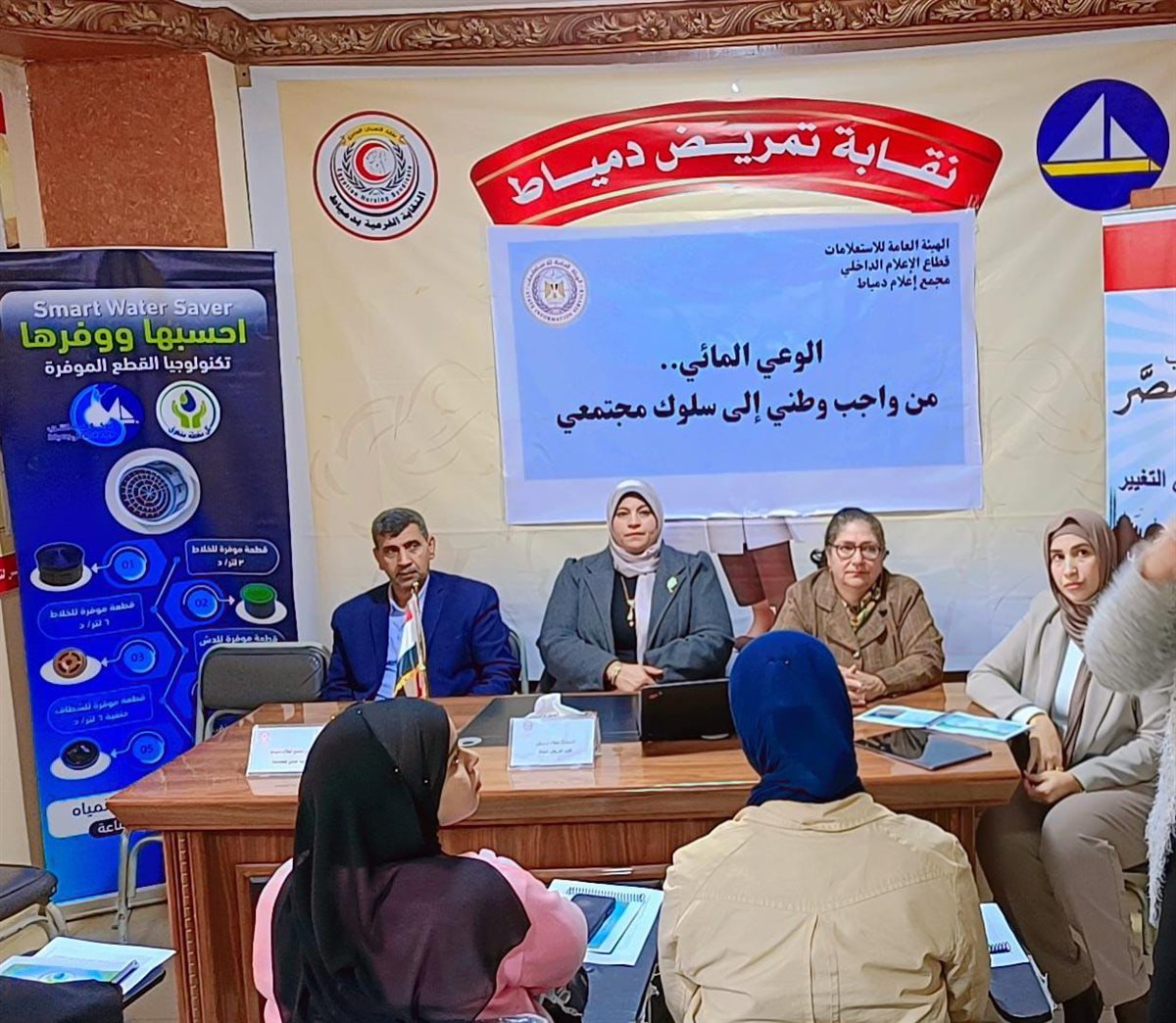 نظم مجمع إعلام دمياط، التابع لقطاع الإعلام الداخلي بالهيئة العامة للاستعلامات، لليوم الثاني على التوالي، ندوة تثقيفية وورشة عمل موسعة بعنوان «الاستدامة المائية في ظل التغيرات المناخية»، وذلك بالتعاون مع شركة مياه الشرب والصرف الصحي بدمياط وفرع نقابة التمريض، في إطار تنفيذ استراتيجية قطاع الإعلام الداخلي 2025–2030، وبرعاية الكاتب الصحفي الدكتور ضياء رشوان رئيس الهيئة العامة للاستعلامات.