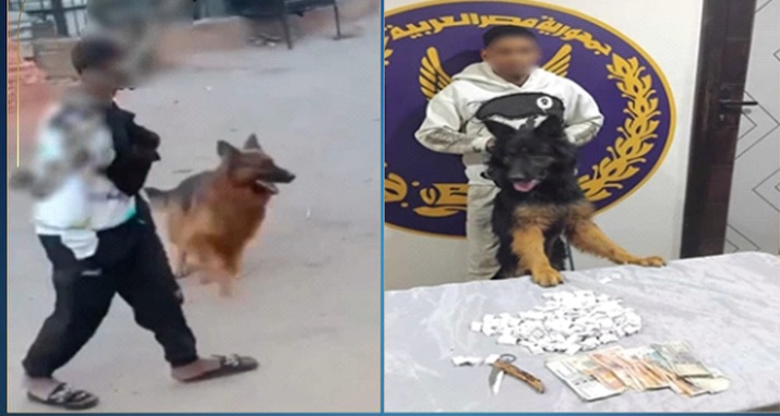 وبتفتيشه عُثر بحوزته على كمية من مخدر الهيروين وسلاح أبيض، وبمواجهته اعترف بارتكاب الواقعة بدعوى المزاح، وحيازته للمواد المخدرة بقصد الاتجار، كما تم بإرشاده ضبط الكلب الظاهر بمقطع الفيديو.