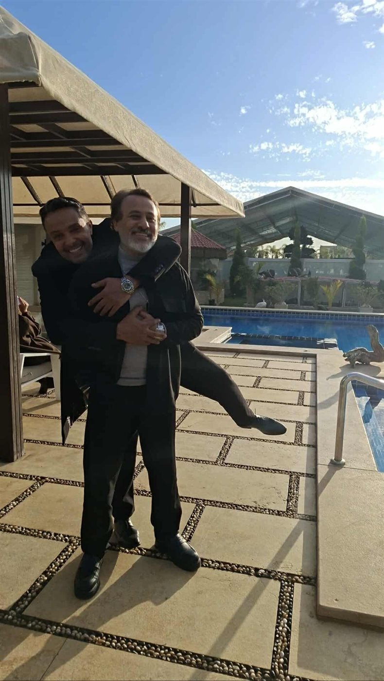 نشر الفنان وائل عبد العزيز، شقيق الفنانة ياسمين عبد العزيز، صورة تجمعه بالفنان إيهاب فهمى من كواليس مسلسل وننسى اللي كان.