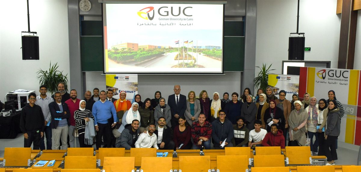 استضافت الجامعة الألمانية بالقاهرة فعالية تعريفية موسعة للتعريف بفرص برنامج إيراسموس لعام 2026 في مصر بمشاركة الدكتورة سلمى يسري مساعد وزير التعليم العالي والبحث العلمي للتعاون الدولي، وكارلا جيوليتي، مستشارة مشاريع، الوكالة التنفيذية الأوروبية للتعليم والثقافة (EACEA)، إليونورا مارتينيلو، مستشارة مشاريع، الوكالة التنفيذية الأوروبية للتعليم والثقافة (EACEA)، الدكتورة زينب الصدر، المنسقة الوطنية لمكتب إيراسموس بلس – مصر.
