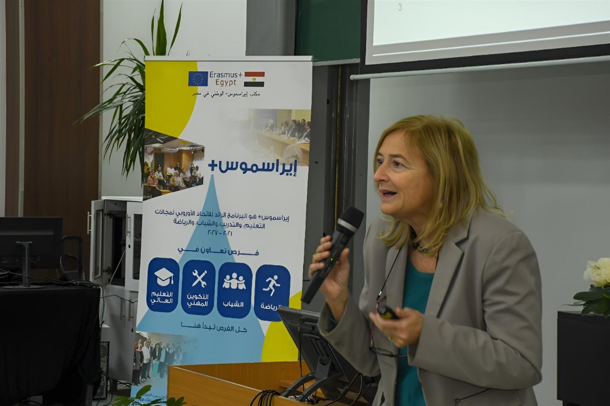 وجاءت الفعالية ضمن سلسلة من اللقاءات وورش العمل المتخصصة لبناء القدرات، والتي تهدف إلى تسليط الضوء على الفرص الجديدة التي يتيحها برنامج إيراسموس للمجتمع الأكاديمي، وتعزيز آلیات الاستفادة من برامج التبادل الأكادیمي والتعاون الدولي بين المؤسسات التعليمية المصرية ونظيراتها الأوروبية.