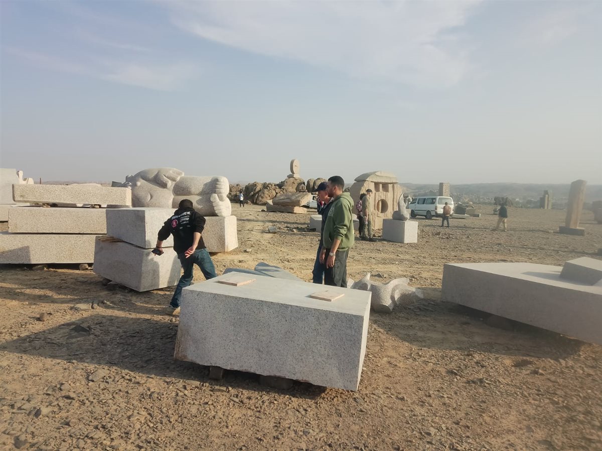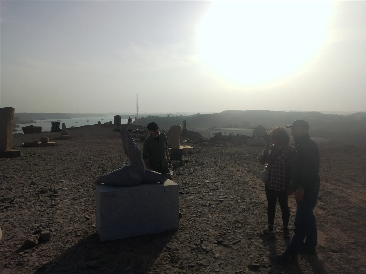 فنانو سيمبوزيوم أسوان الدولي للنحت يزورون المتحف المفتوح