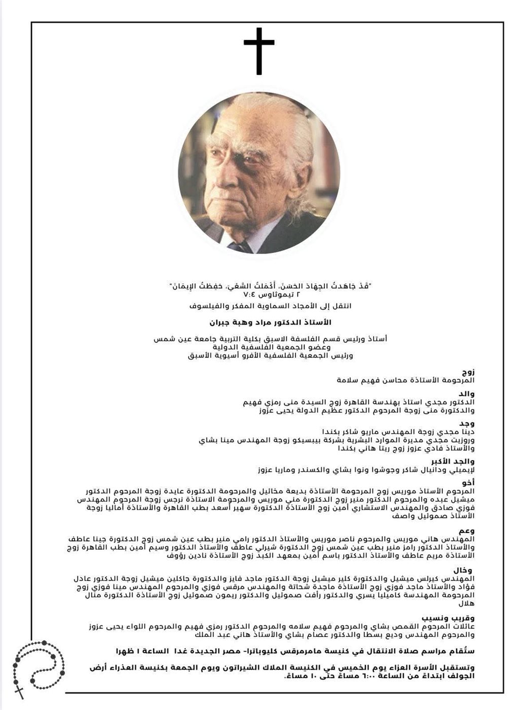 عزاء وجنازة مراد وهبة