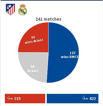 أرقام مباريات ريال مدريد ضد أتلتيكو في جميع المسابقات