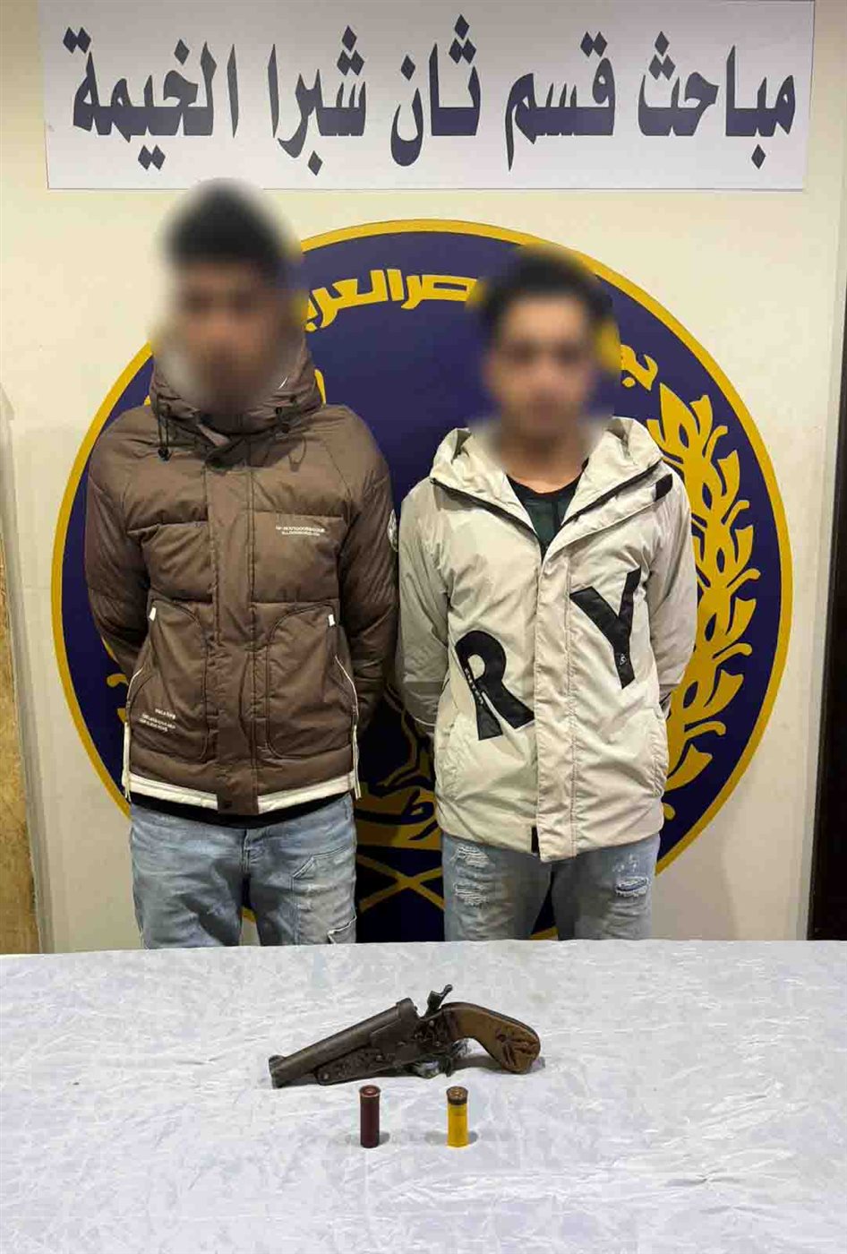 تم تحديد وضبط العنصرين الإجراميين المقيمين بدائرة قسم شرطة ثان شبرا الخيمة، وبحوزة أحدهما فرد خرطوش المستخدم في الواقعة، وأقرا خلال المواجهة بارتكاب الواقعة كما ظهر بالمقطع.