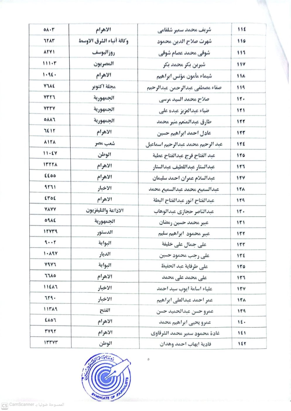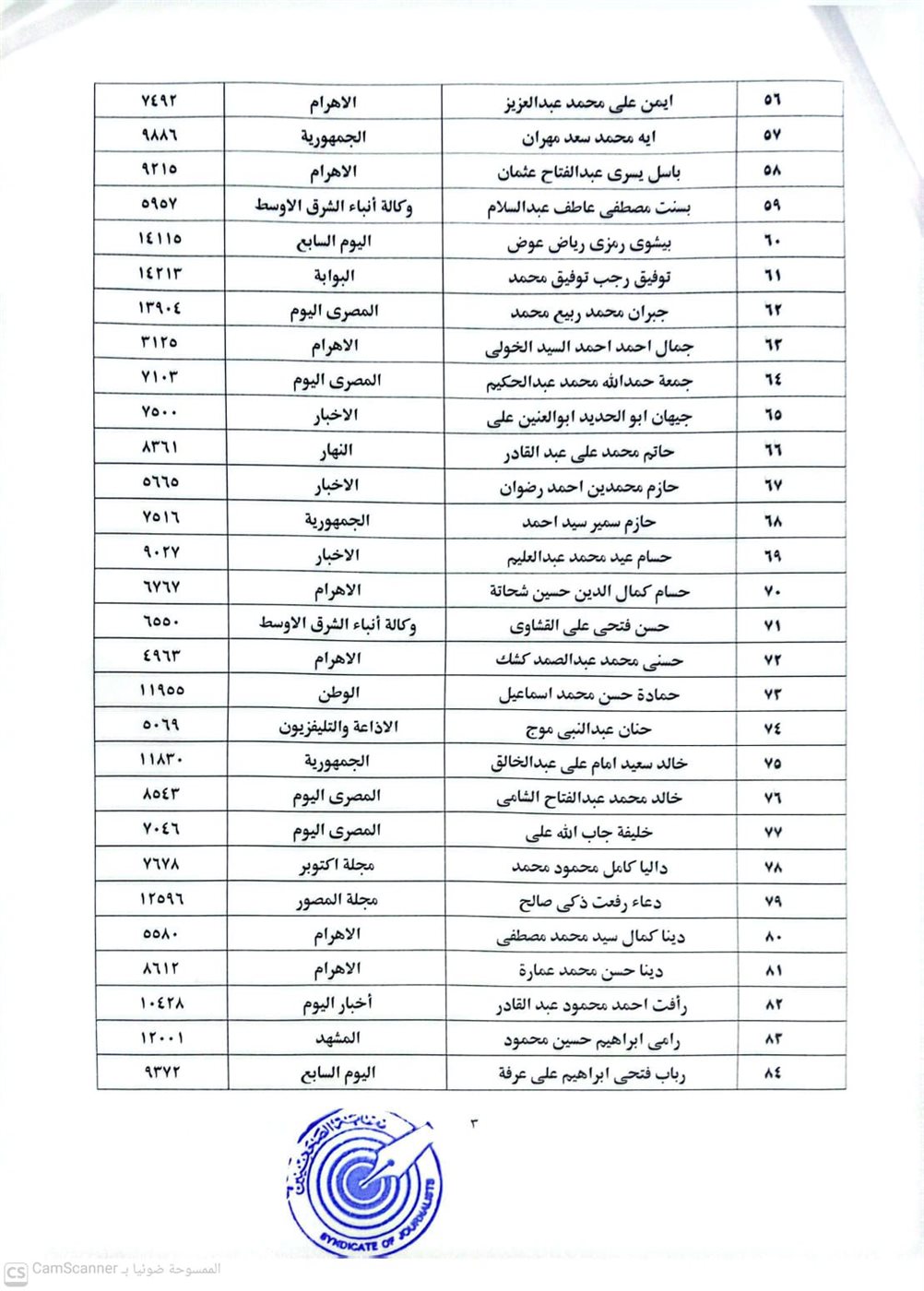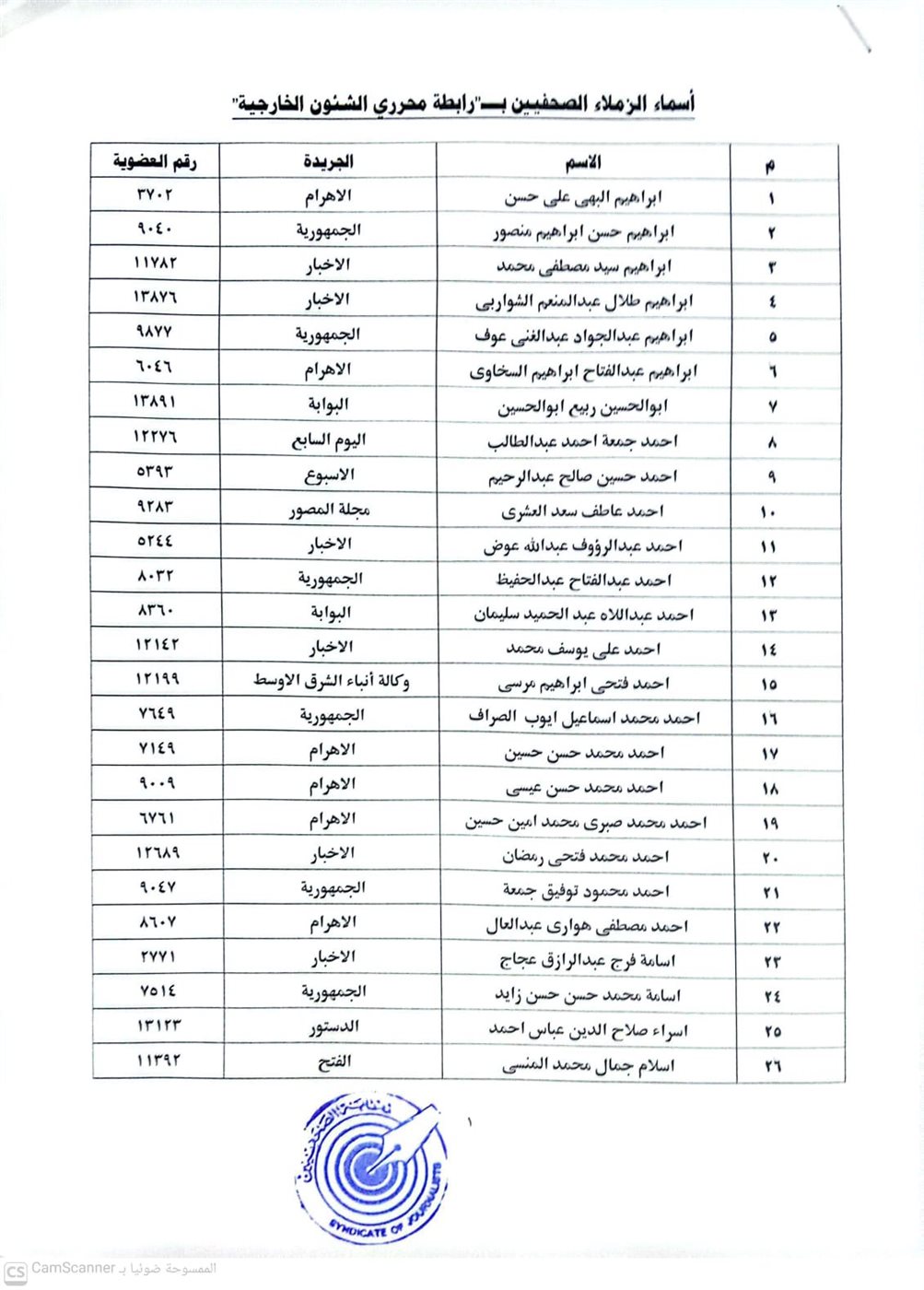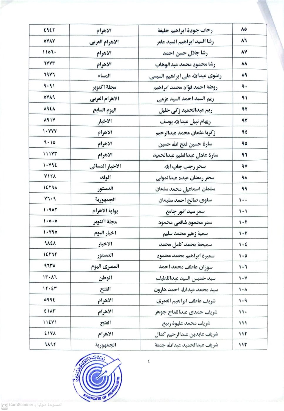 كما شملت قائمة المرشحين لعضوية المكتب التنفيذي كلًا من: رامي إبراهيم حسين محمود (جريدة المشهد)، رضوى السيسي (جريدة المساء)، شريف ربيع (جريدة الفتح)، محمد شعت (جريدة البوابة)، محمد وديع غزي (مجلة أكتوبر).