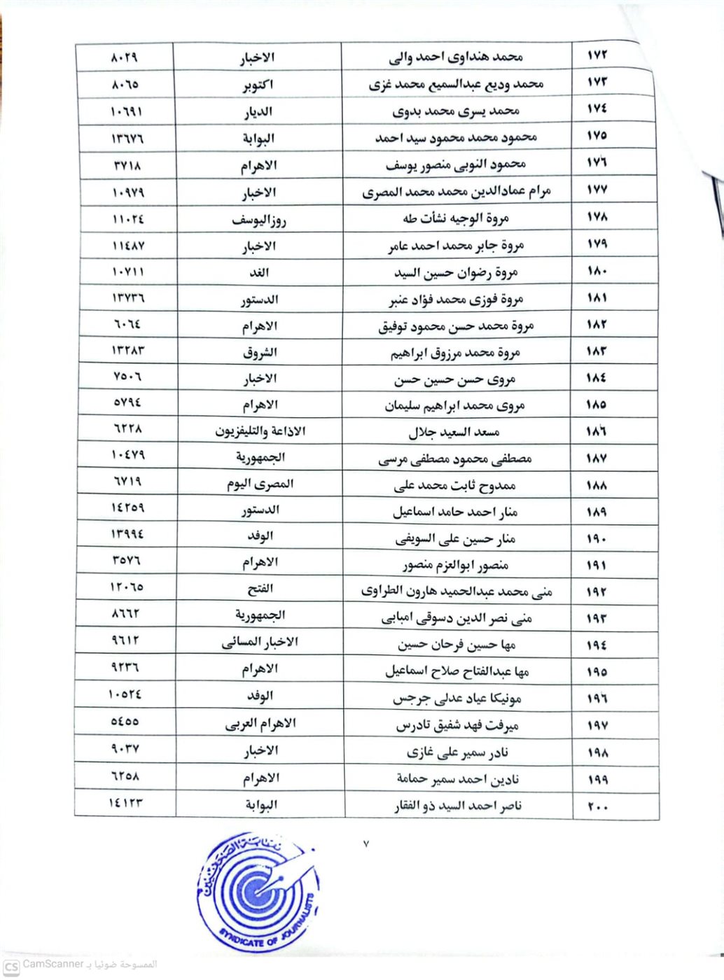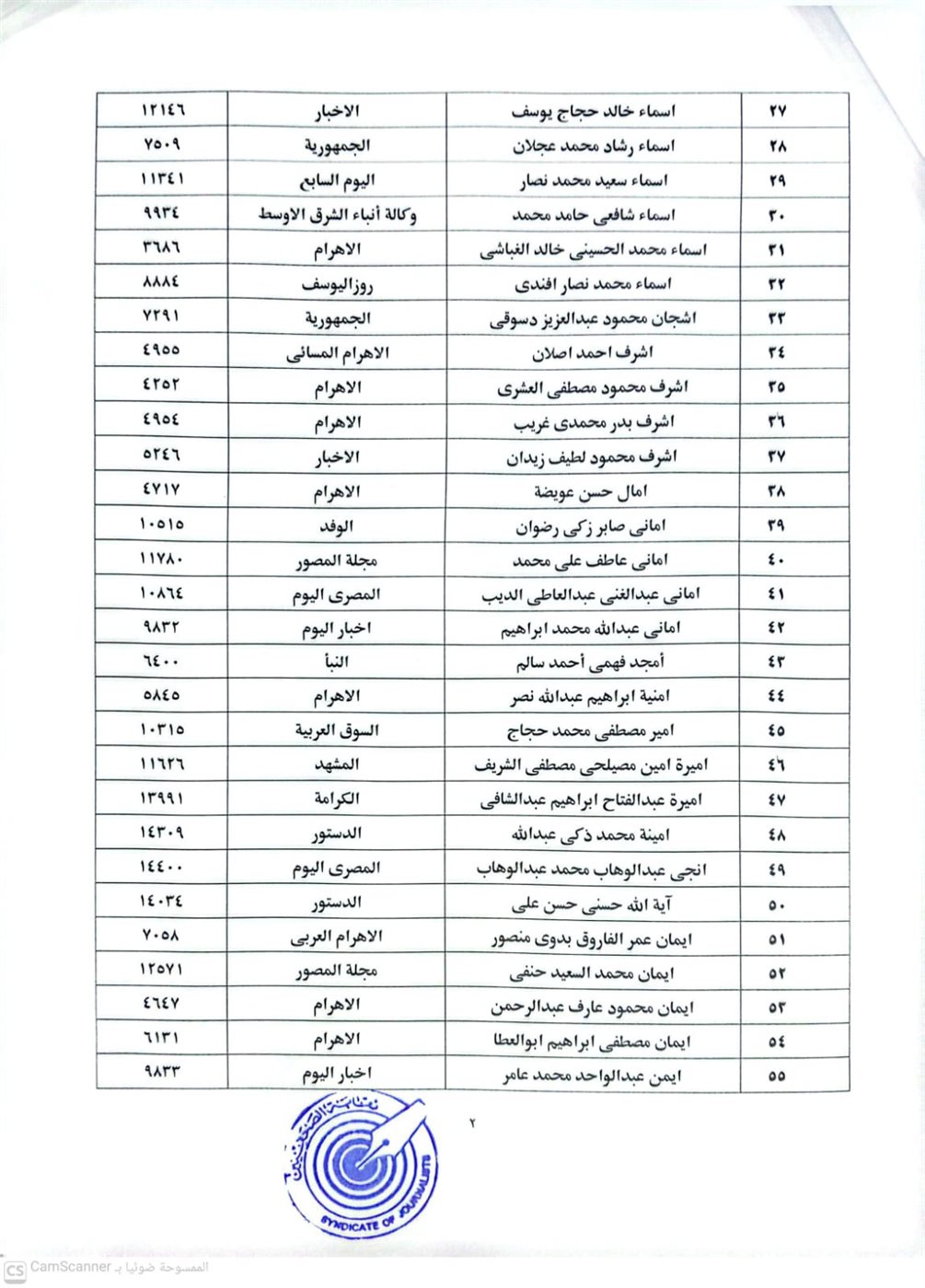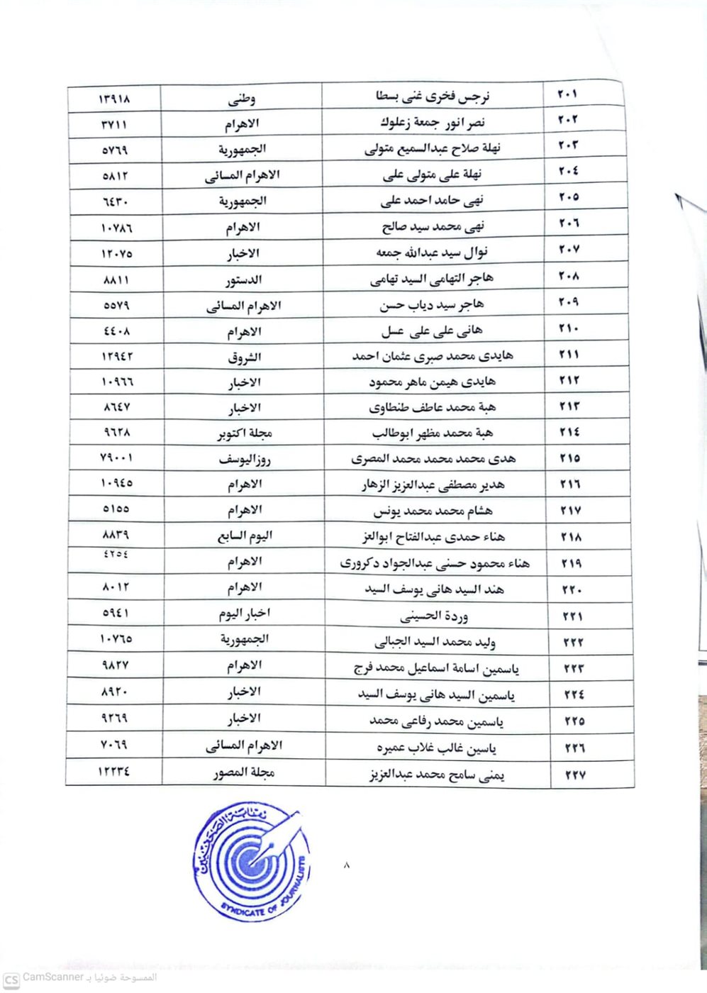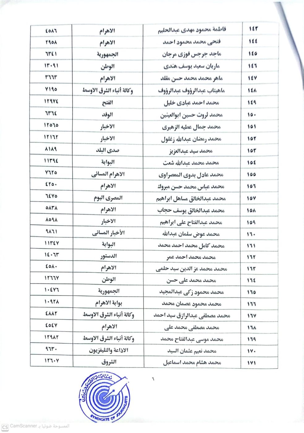 كما شملت قائمة المرشحين لعضوية المكتب التنفيذي كلًا من: رامي إبراهيم حسين محمود (جريدة المشهد)، رضوى السيسي (جريدة المساء)، شريف ربيع (جريدة الفتح)، محمد شعت (جريدة البوابة)، محمد وديع غزي (مجلة أكتوبر).