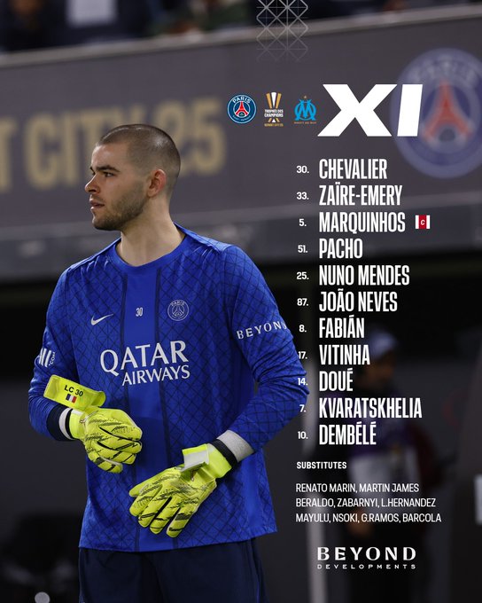 ويفتقد باريس سان جيرمان أمام مارسيليا جهود كلا من النجم المغربي أشرف حكيمي بسبب تواجده مع منتخب بلاده في كأس أمم إفريقيا، إلى جانب غياب الحارس الروسي ماتفي سافونوف بداعي الإصابة.