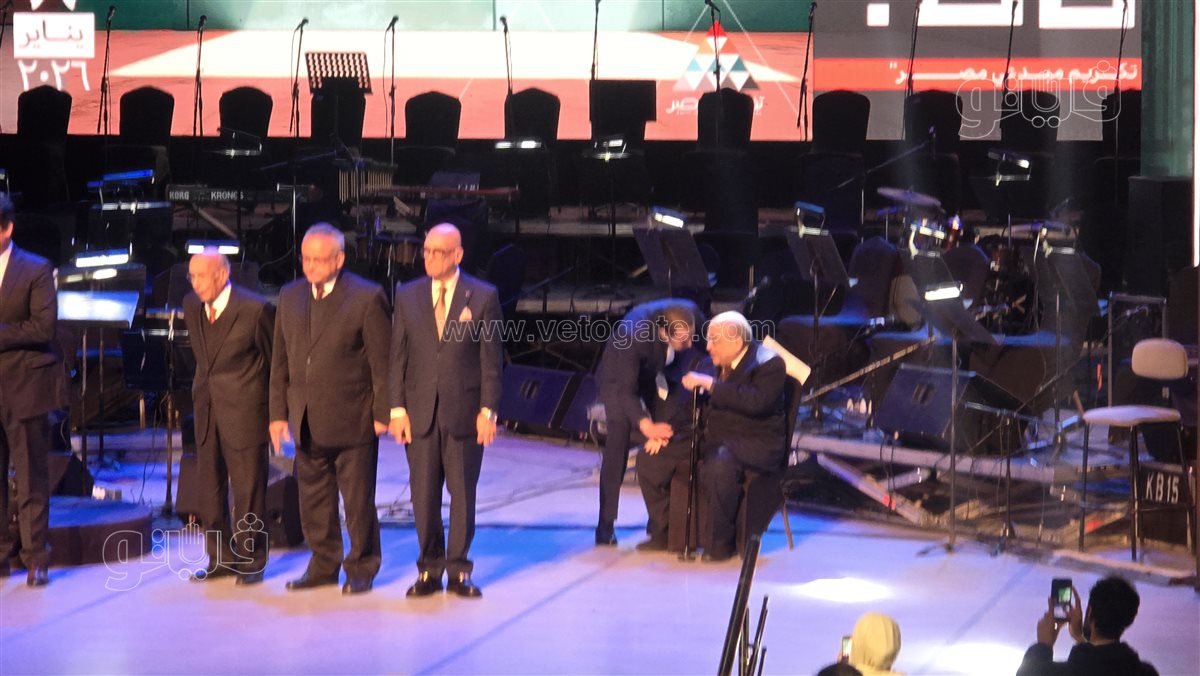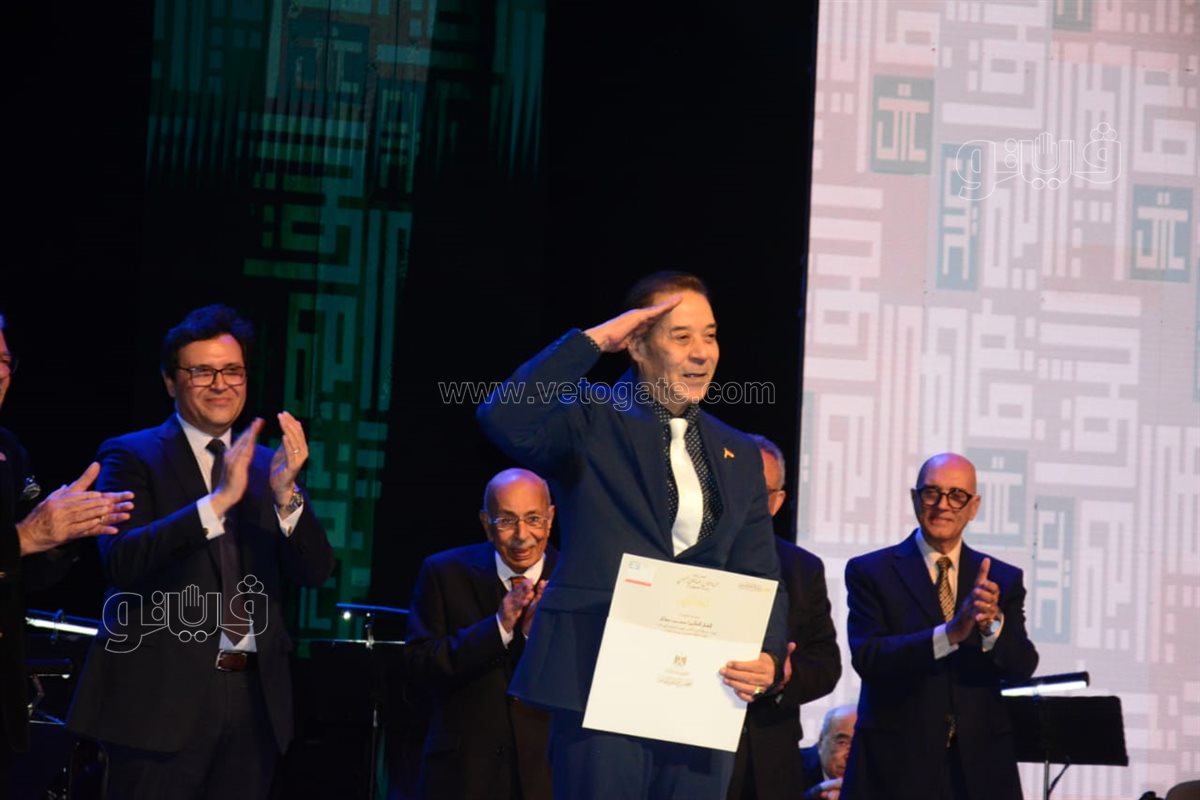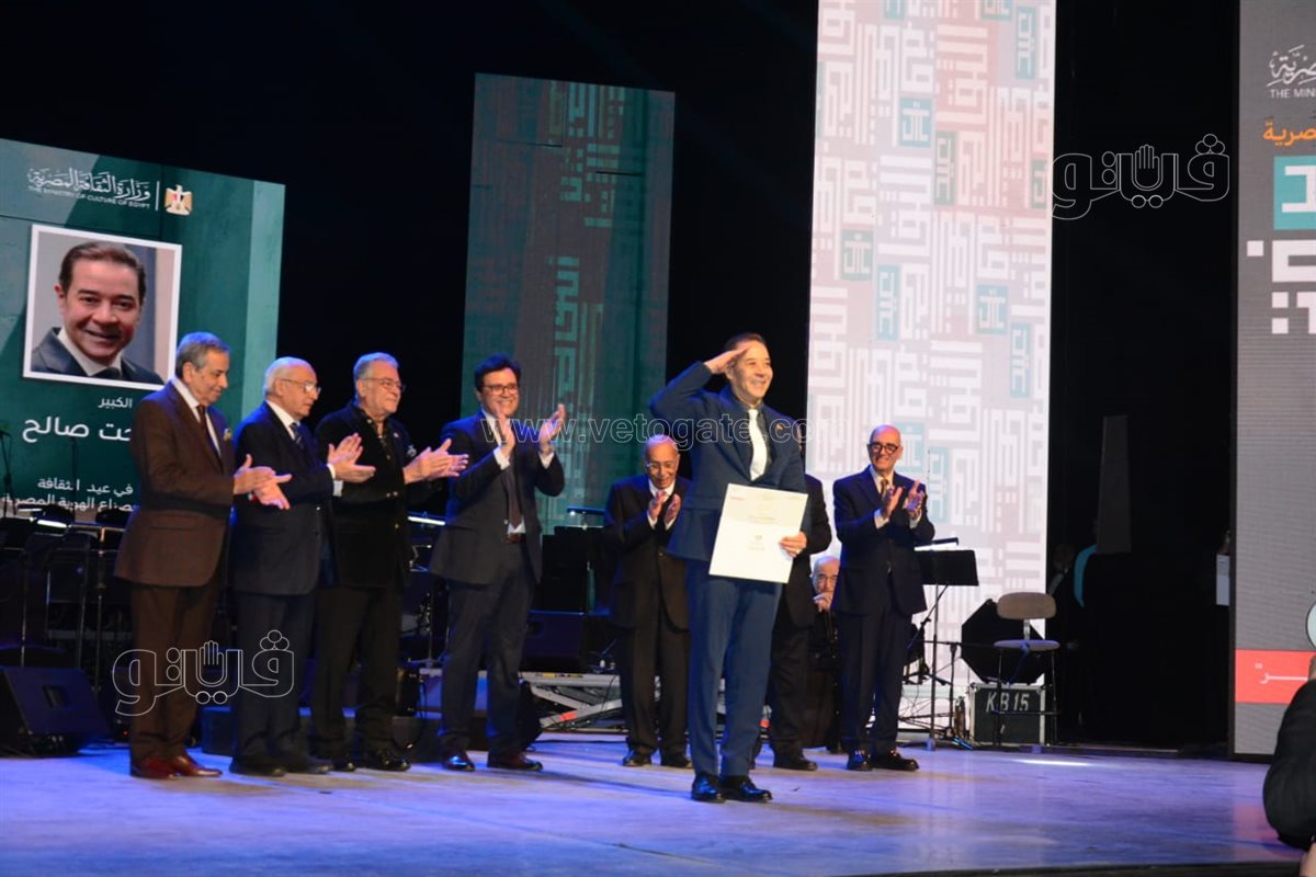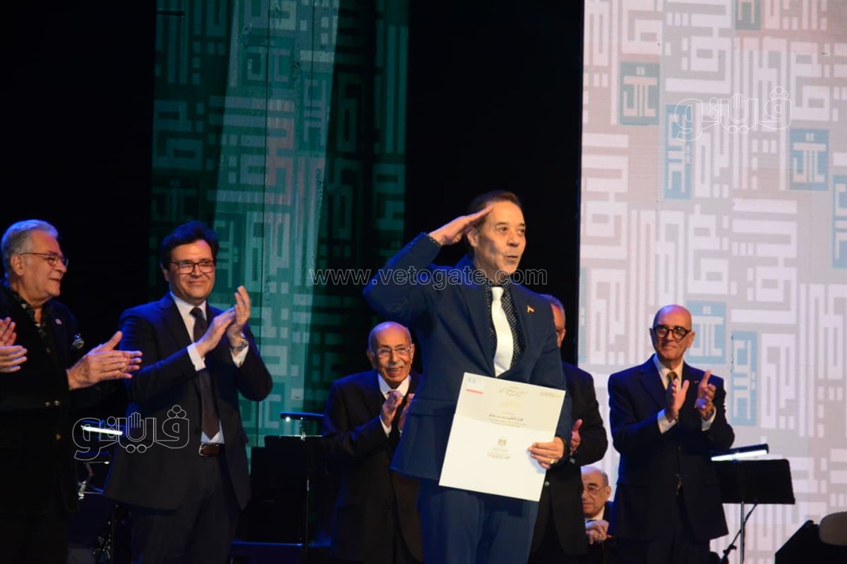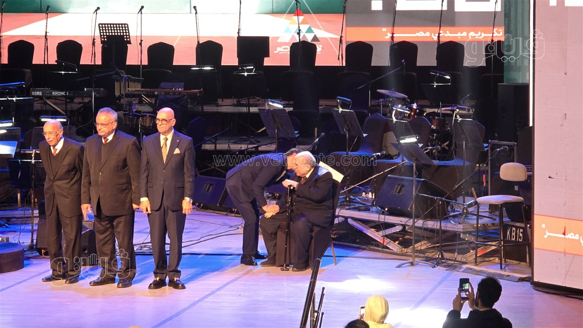 مدحت صالح يقبِّل مصطفى الفقي ويؤدي التحية للجمهور أثناء تكريمه بـ"عيد الثقافة" (صور)
