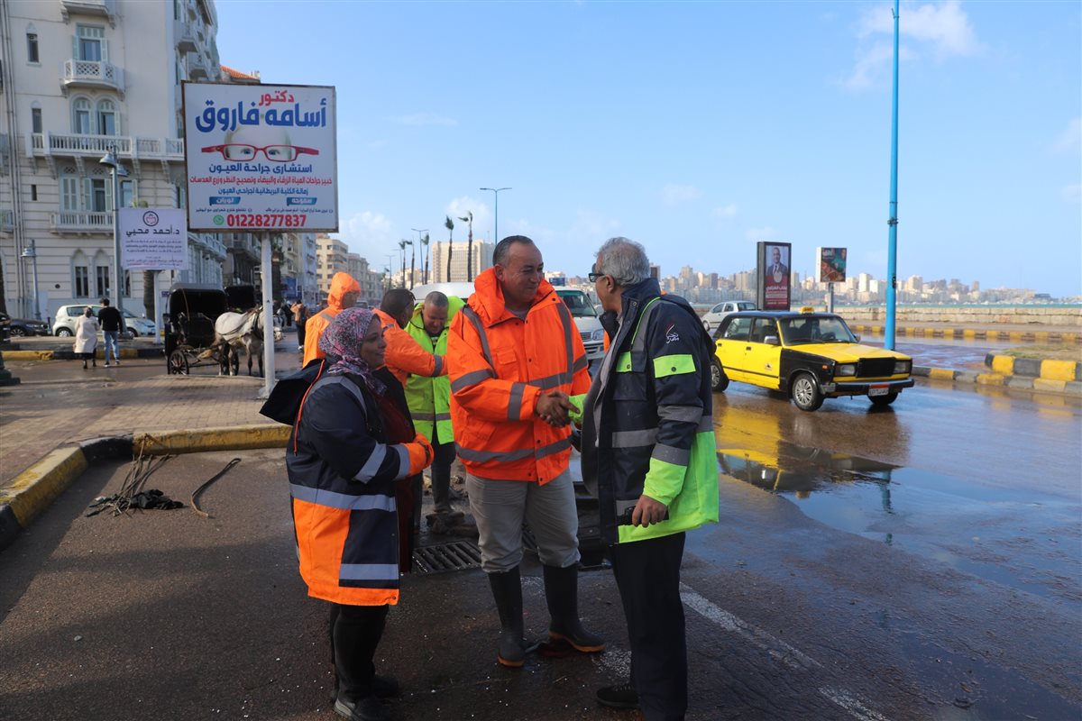 رئيس صرف صحي الإسكندرية يجري جولة ميدانية أثناء النوة (صور)