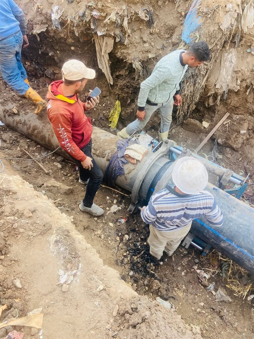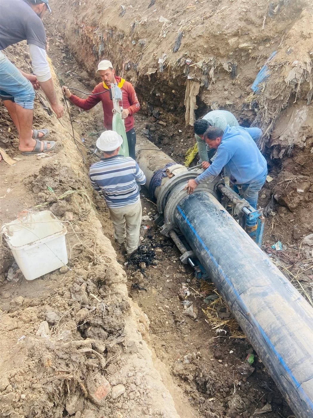 حيث تم الانتهاء من أعمال الصيانة بخط مياه ليسا الجمالية بولي إيثلين قطر 560 مم - 15 لحام .