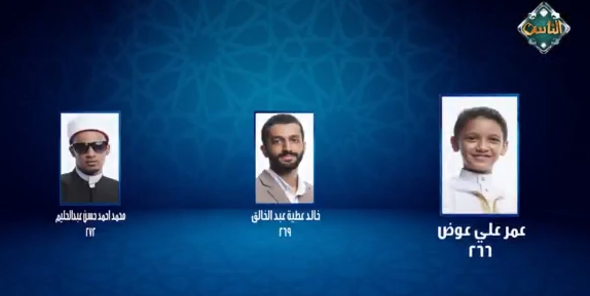 شهدت حلقة اليوم من برنامج “ دولة التلاوة” خروج المتسابق عمر علي بعد حصوله على أقل درجات من لجنة التحكيم، جيث جاءت درجات المتسابقين كالتالي: محمد أحمد حسن - 272، خالد عطية - 269، عمر علي - 266.