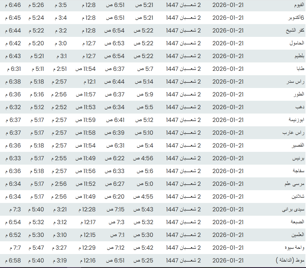 مواقيت الصلاة اليوم: