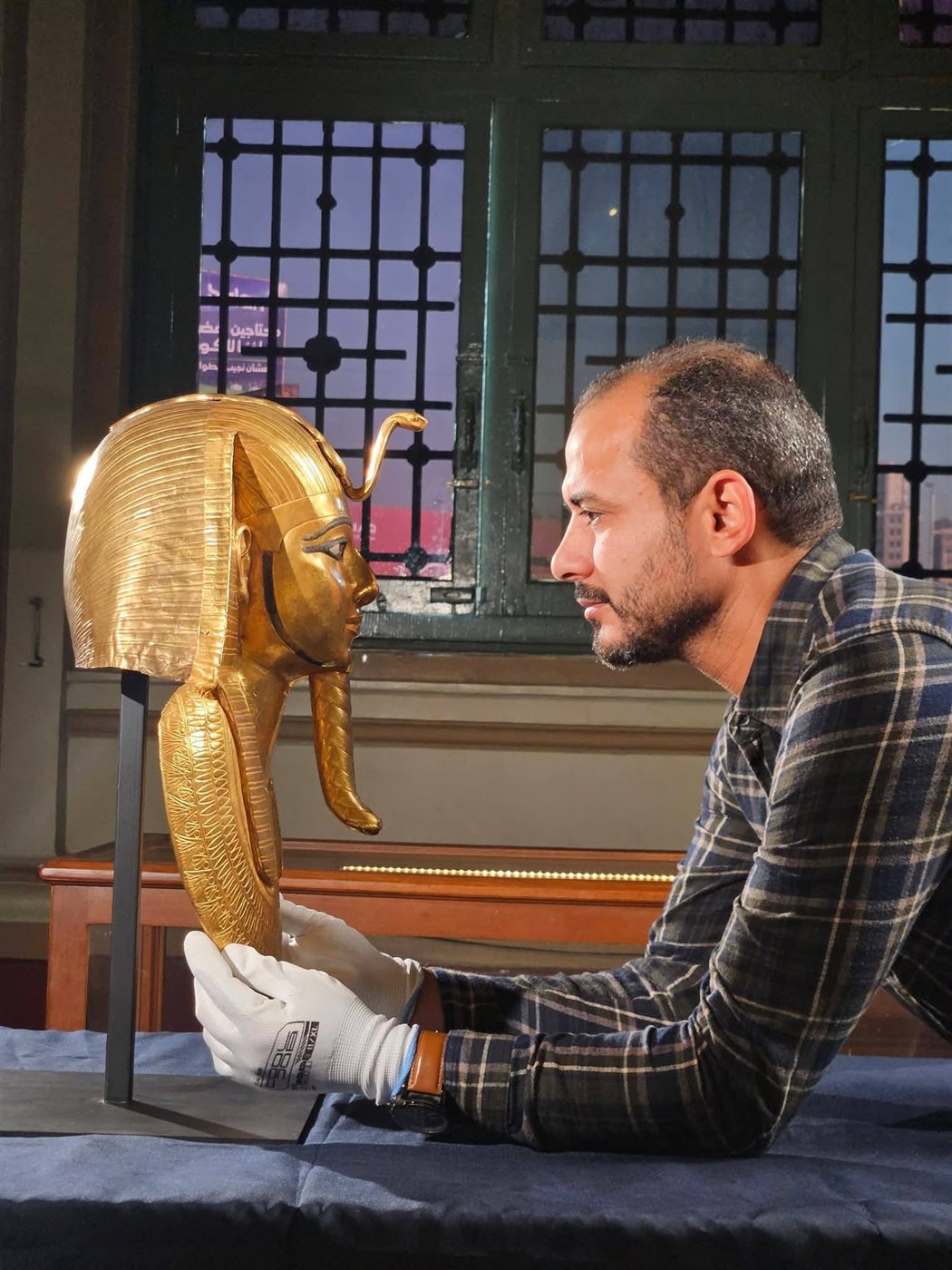 القناع الذهبي للملك بسوسنس الأول يتألق من جديد بمتحف التحرير (صور)