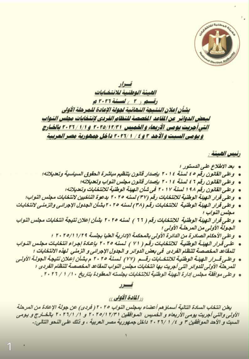بالأسماء، الوطنية للانتخابات تعلن النتائج النهائية لجولة الإعادة في 27 دائرة (فيديو وصور)