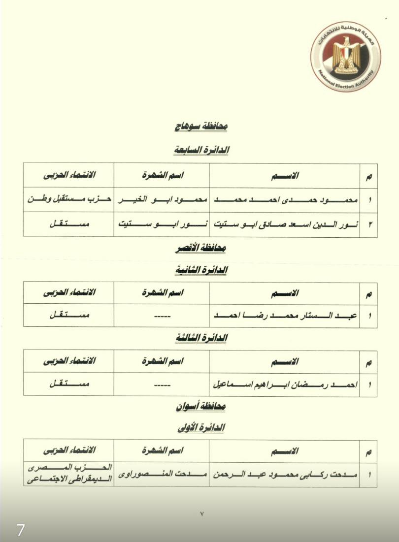 الدائرة الرابعة (مركز إدفو): فوز محمد أبو الخير عبد العاطي.