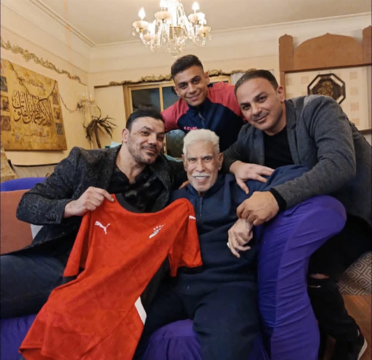 وتواجد رفقة المعلم حسن شحاتة في الصورة نجم منتخب مصر والزمالك السابق البلدوزر عمرو زكي.