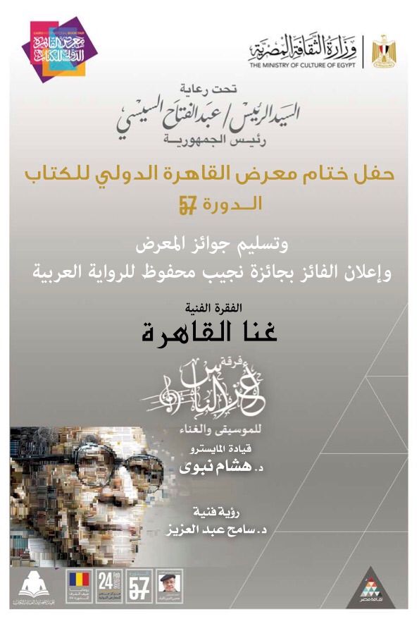 كما ستقام حفلات فنية كبرى، منها حفل الافتتاح "يوسف شاهين.. حدوتة مصرية"، وحفل الختام "غنى القاهرة" الذي سيشهد توزيع جوائز المعرض وإعلان الفائز بجائزة نجيب محفوظ للرواية.
