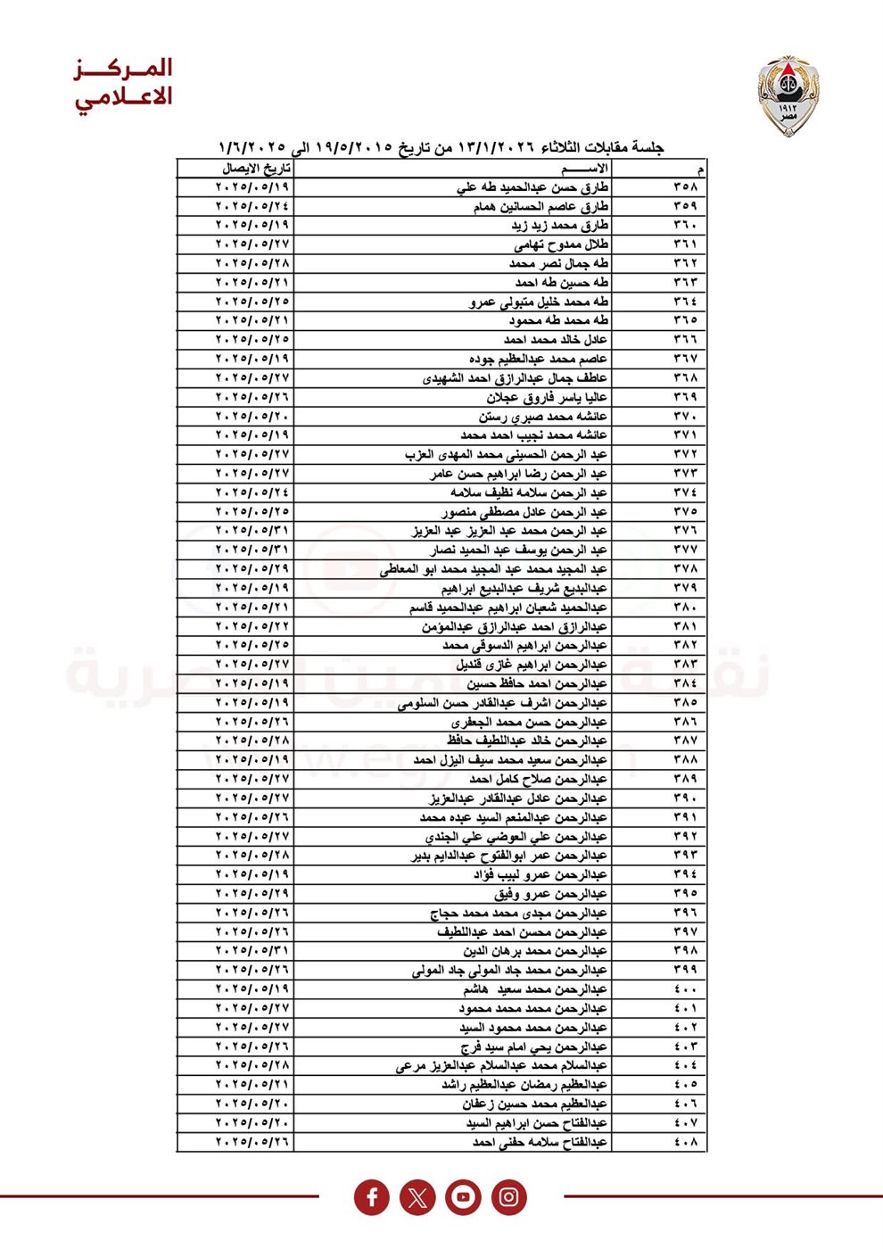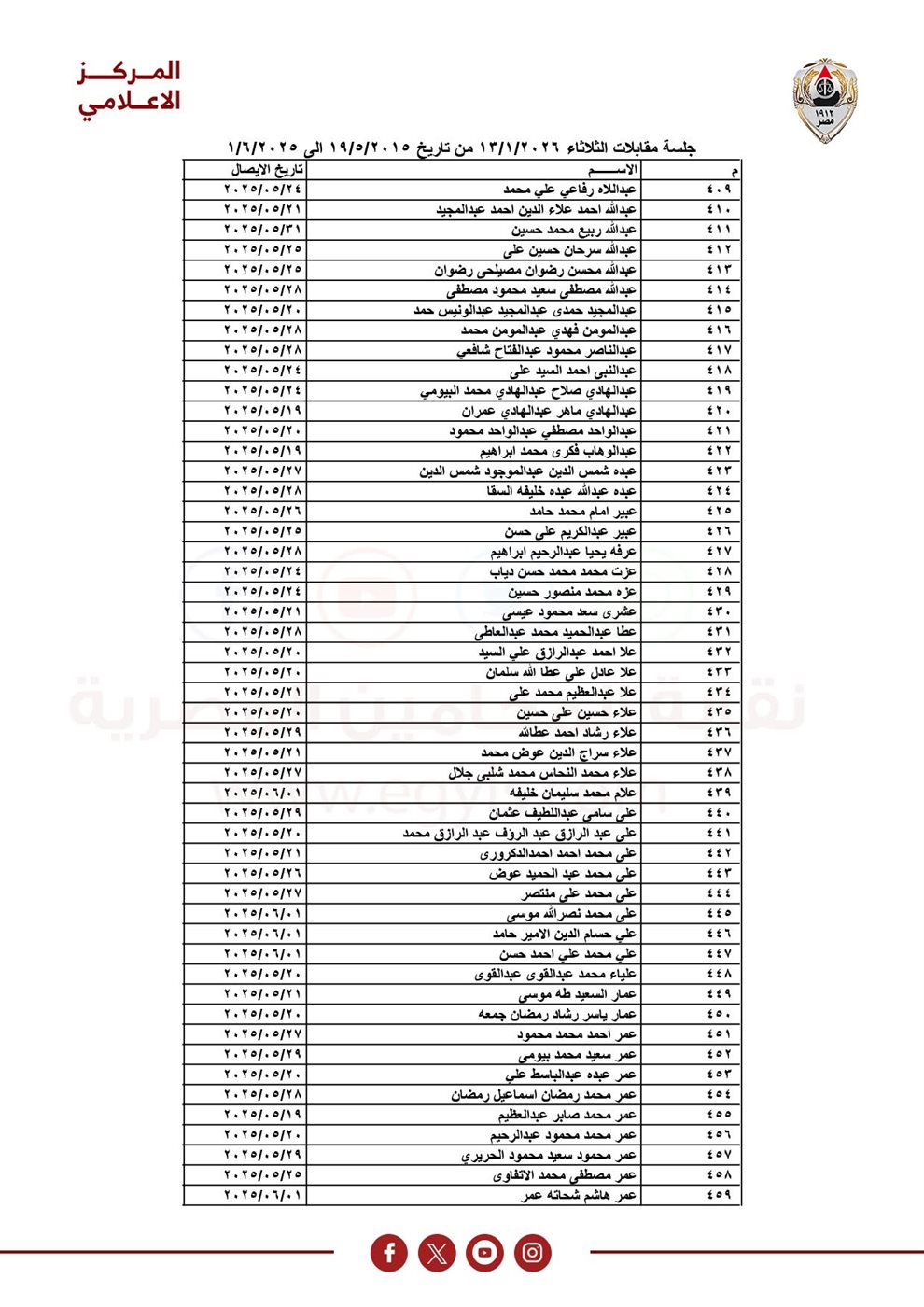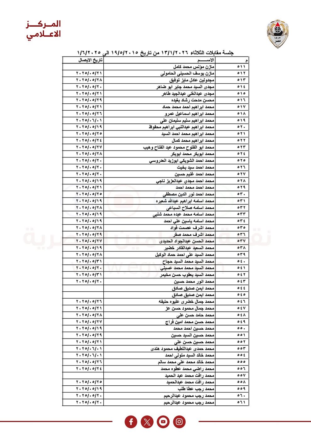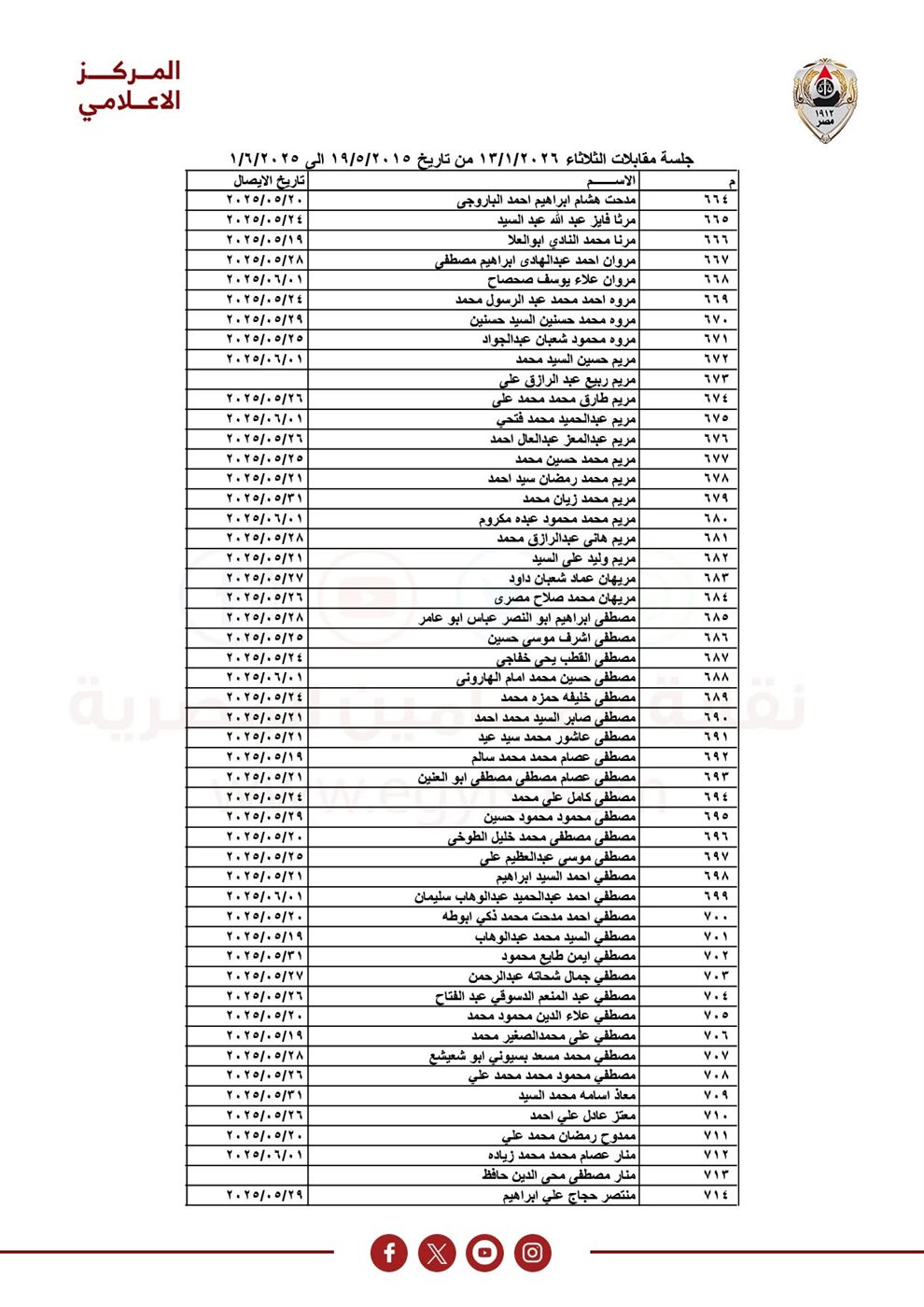 أعلنت نقابة المحامين، أسماء المحامين، الذي سيخضعون للمقابلات الشخصية، غدًا الثلاثاء، تمهيدًا لقيدهم بالجدول العام بالنقابة، الذي يبلغ عددهم ٨٤٠ محاميًا.