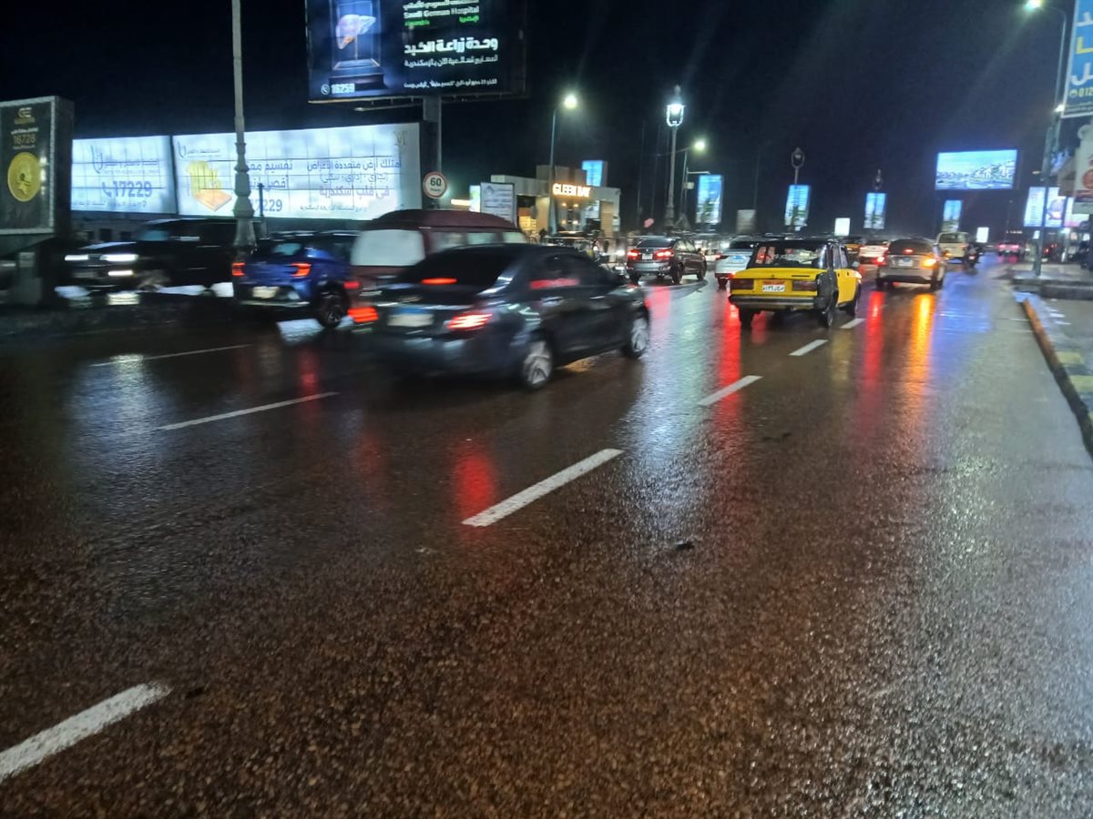واصلت الأمطار الغزيرة سقوطها على ميادين وشوارع محافظة الإسكندرية ليلًا، وسط موجة من الصقيع وسوء الأحوال الجوية بالمحافظة.