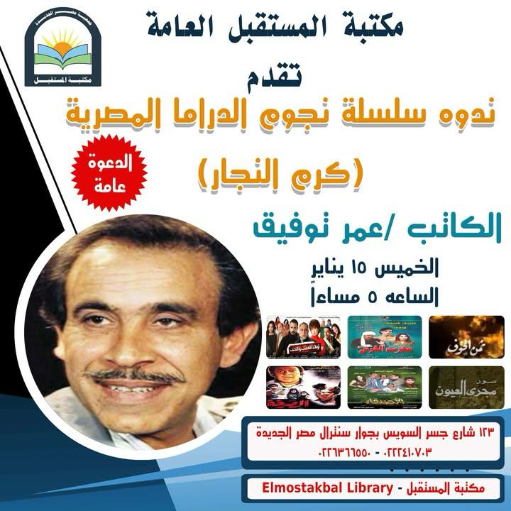 "نجوم الدراما المصرية" على مائدة مكتبة المستقبل الخميس