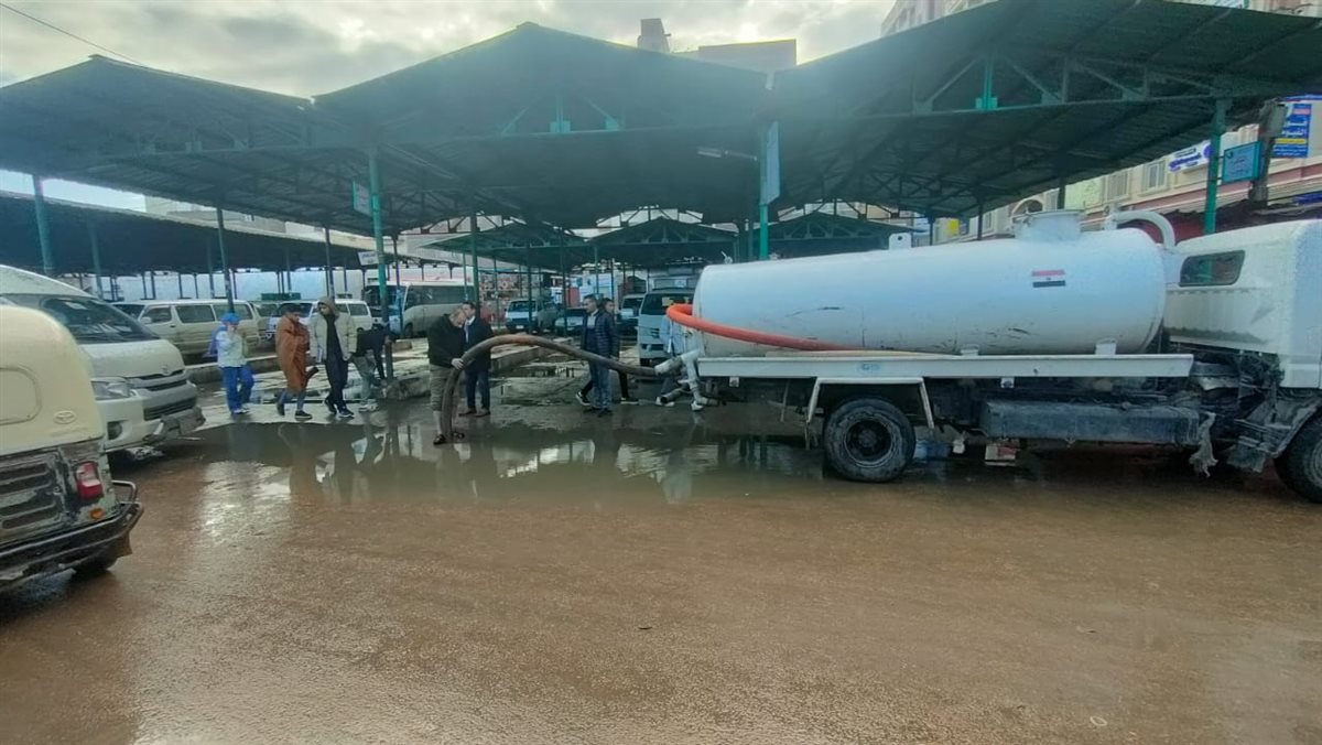 شفط المياه المتراكمة بمدخل المحافظة