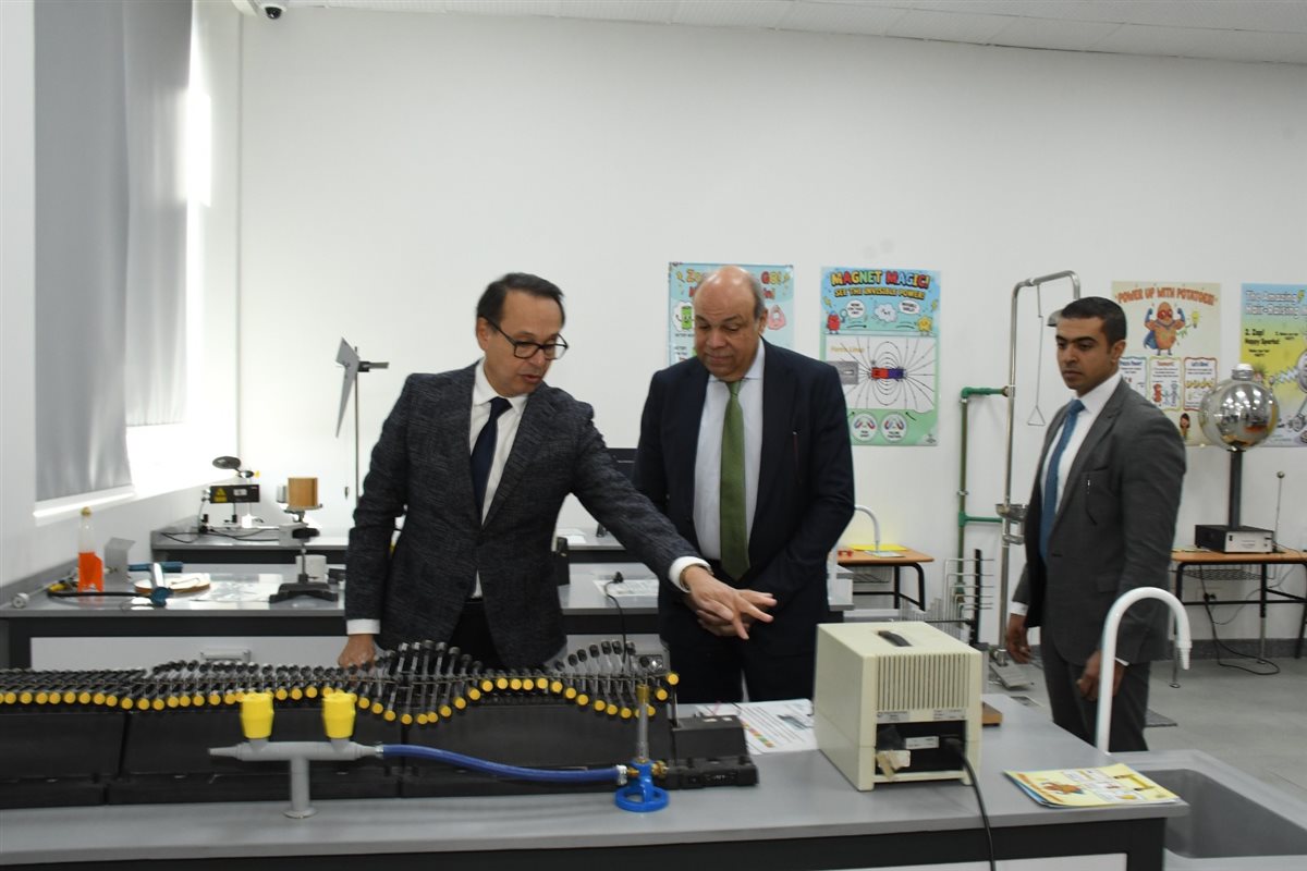 واطّلع الوزير على منظومة التعليم المطبقة، والمناهج التي تعتمد على الدمج بين الدراسة النظرية والتطبيق العملي، بما يسهم في إعداد أجيال مؤهلة وفق أحدث المعايير الدولية.