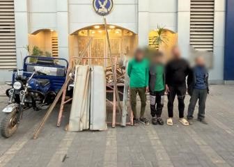 تم ضبط 3 أشخاص لهم معلومات جنائية بدائرة قسم مدينة نصر ثان، لقيامهم بسرقة أسياخ حديدية وأساليب أخرى من الكبارى أثناء استخدامهم دراجات نارية "تروسيكل"، وبحوزتهم المسروقات (3 زوى حديد، 8 ألواح صاج، وأدوات السرقة). كما تم ضبط تاجر خردة "سيئ النية" كان على علم بأن المضبوطات من متحصلات السرقة، واعترف بذلك أمام جهات التحقيق.