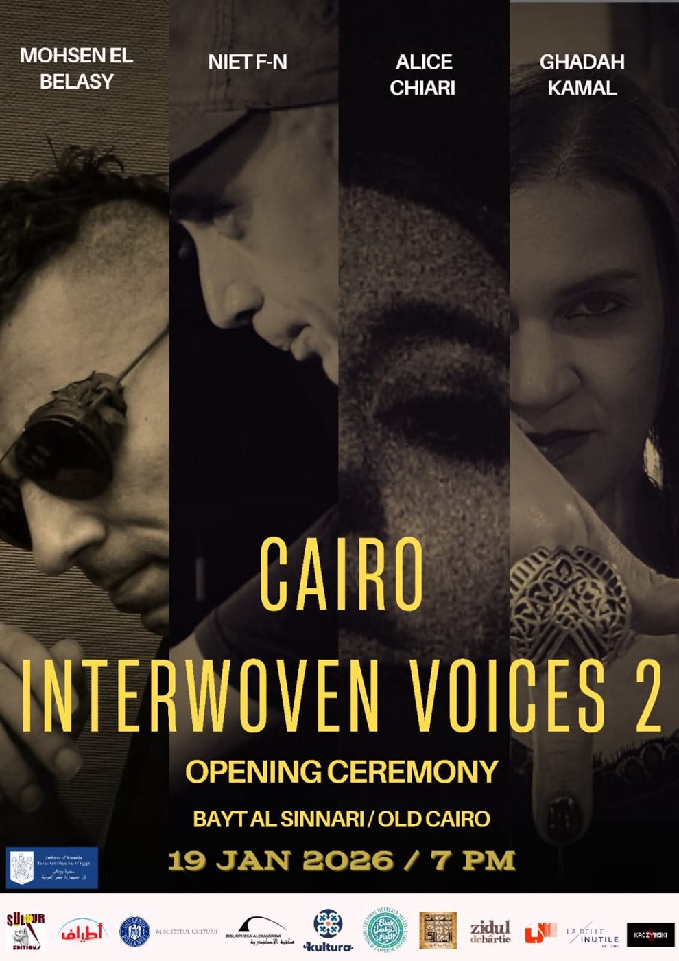 ويُقام حفل الافتتاح بتنظيم مشترك بين دار أطياف للنشر وSulfur Editions، وبالشراكة الاستراتيجية مع سفارة رومانيا بالقاهرة، ووزارة الثقافة المالطية، ووزارة الثقافة الرومانية.