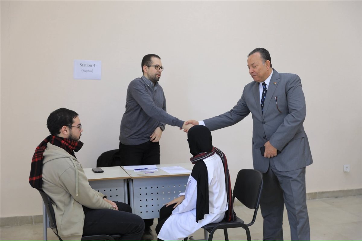 وتأتي هذه الجولة في إطار المتابعة المستمرة لحسن سير الاختبارات، حيث صُممت الاختبارات العملية بكلية الطب وفق نظام المحطات المتعددة (OSCE)، بهدف تقييم المهارات الإكلينيكية للطلاب، وشملت محطات متنوعة لتقييم مهارات الفحص السريري، والتشخيص، واتخاذ القرار الطبي، إلى جانب محطات مخصصة لتقييم مهارات التواصل والمهارات السريرية.