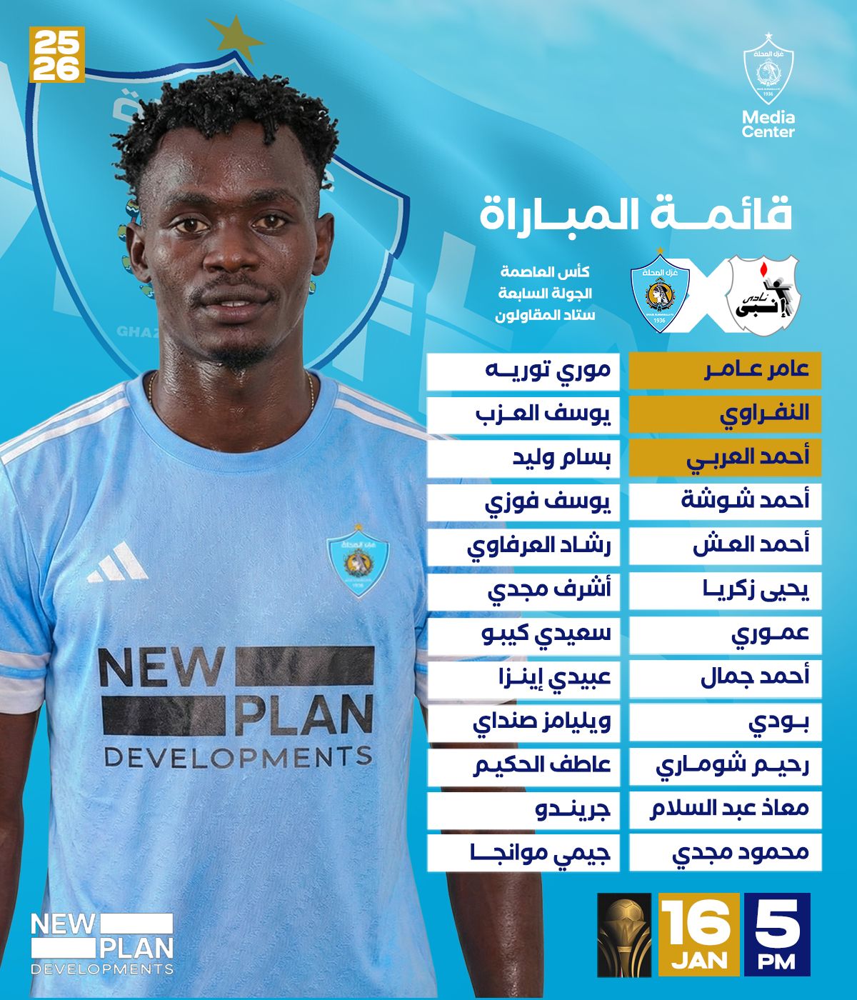 قائمة غزل المحلة لمواجهة إنبي